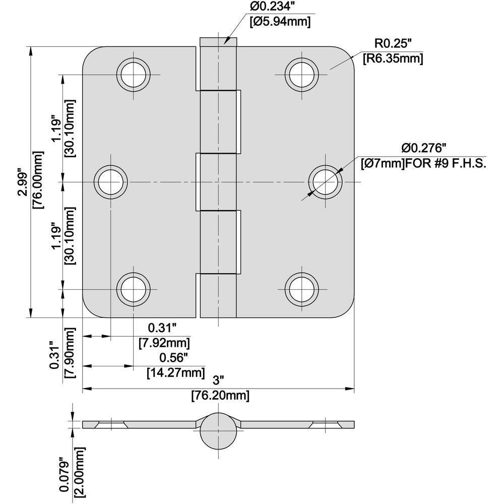 Each Radius Door Hinge is designed for an easy and quick installation. Made from solid steel for added durability. This door hinge features a 5 knuckle full mortise design.