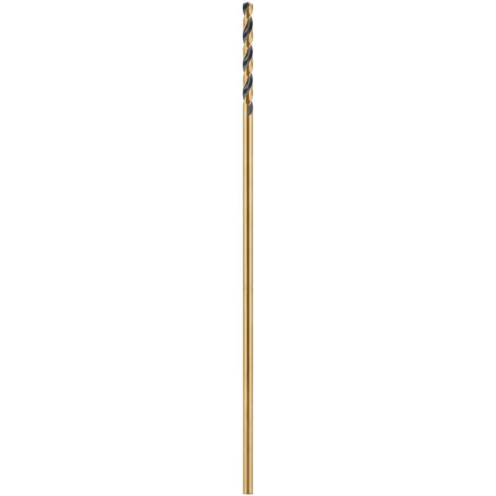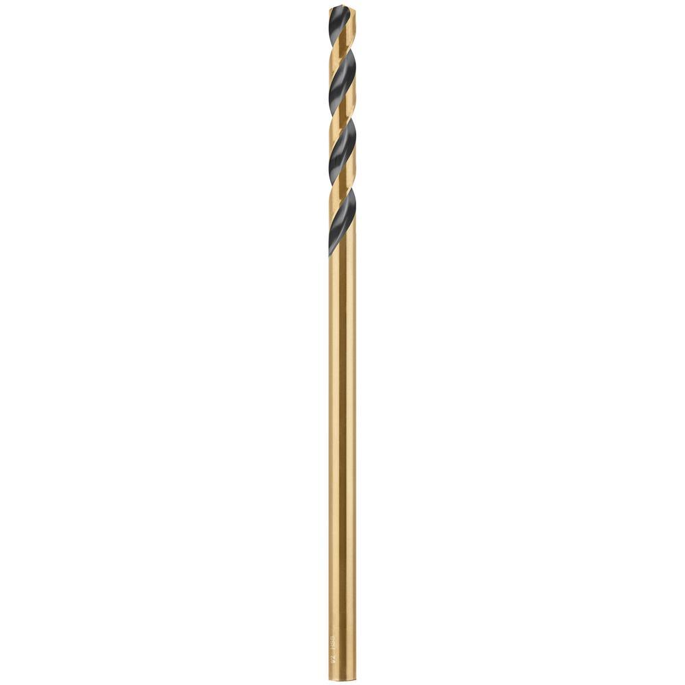 The DEWALT Black & Gold Metal Drill Bits feature a black and gold coating for preventing rust. The tapered web design provides extreme durability to resist breakage. The bits feature a 3-flats shank to reduce spin-out in the chuck and are made of heavy-duty High Speed Steel for drilling into a variety of materials including plastic, wood, and metal. Each bit features a 135° split point tip design to help reduce walking.