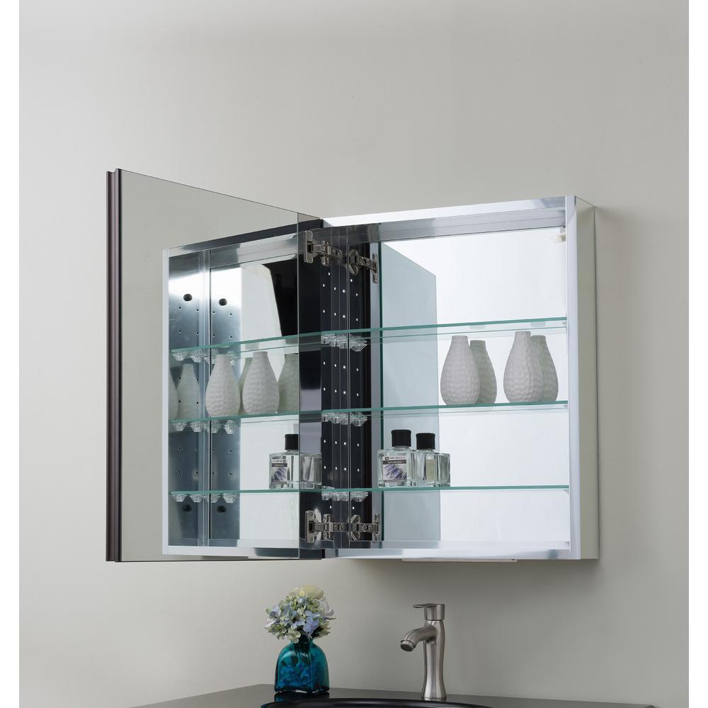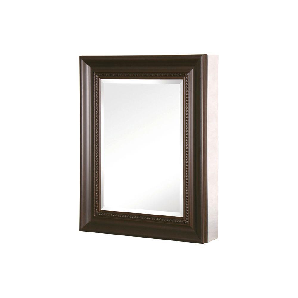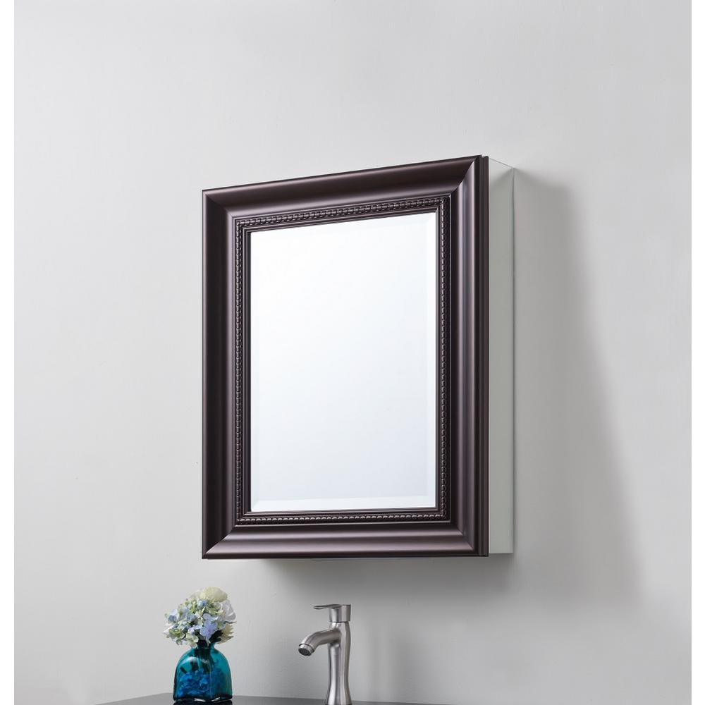 The 20 in. x 26 in. Cabinet has a deco framed door in oil rubbed bronze. Inside the adjustable glass shelves hold all your toiletries and bath items. Our rust-free aluminum construction with mirror back ensures years of use.