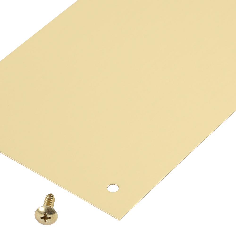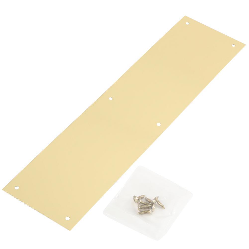 Enhance your door with this 4 in. x 16 in. polished brass plate. Typically found on commercial or industrial doors, it features solid brass construction with six mounting holes. The plate includes a removable PVC coating and fasteners to facilitate simple installation.