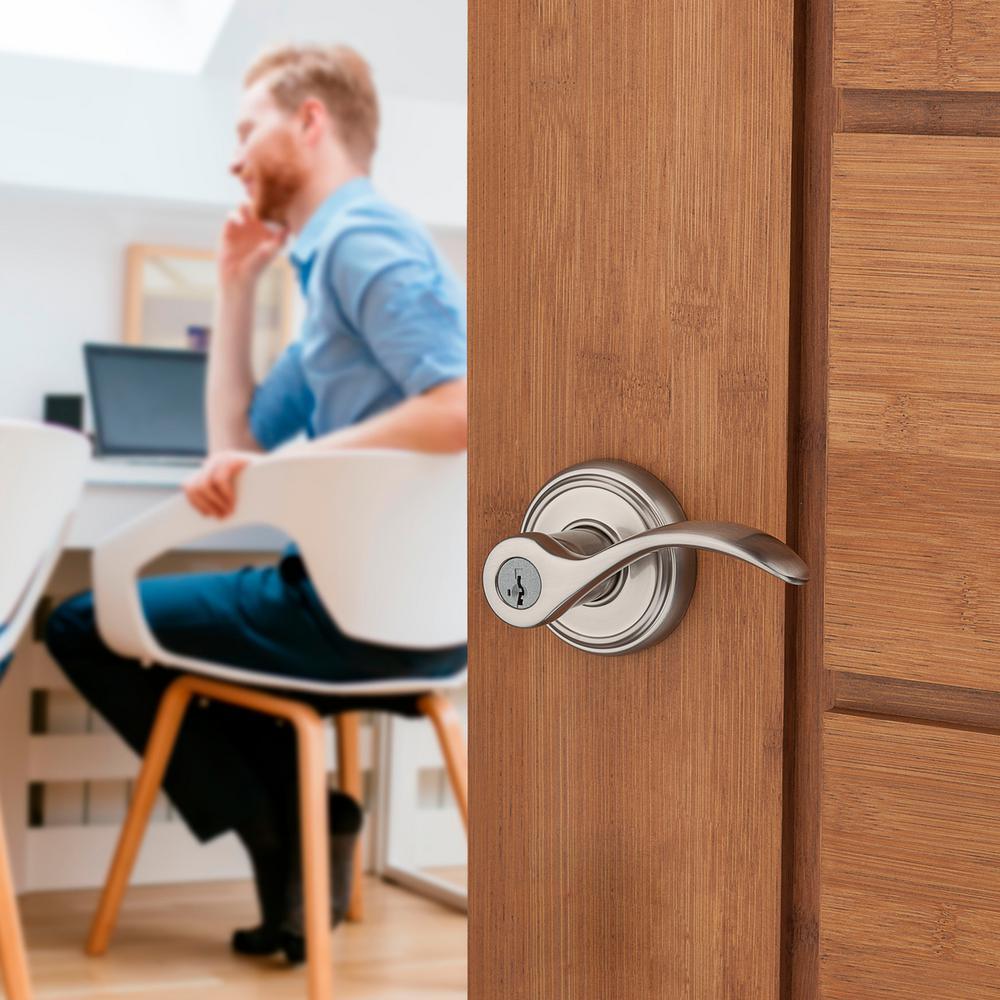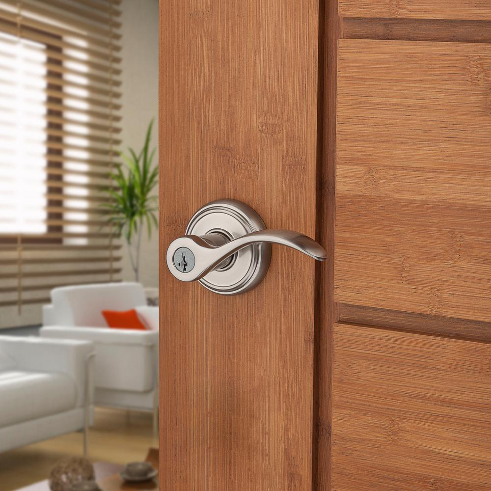 Prestige Tobin Satin Nickel Entry Door Lever Featuring SmartKey Security