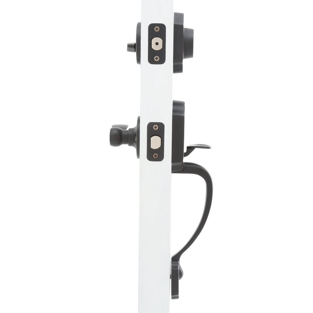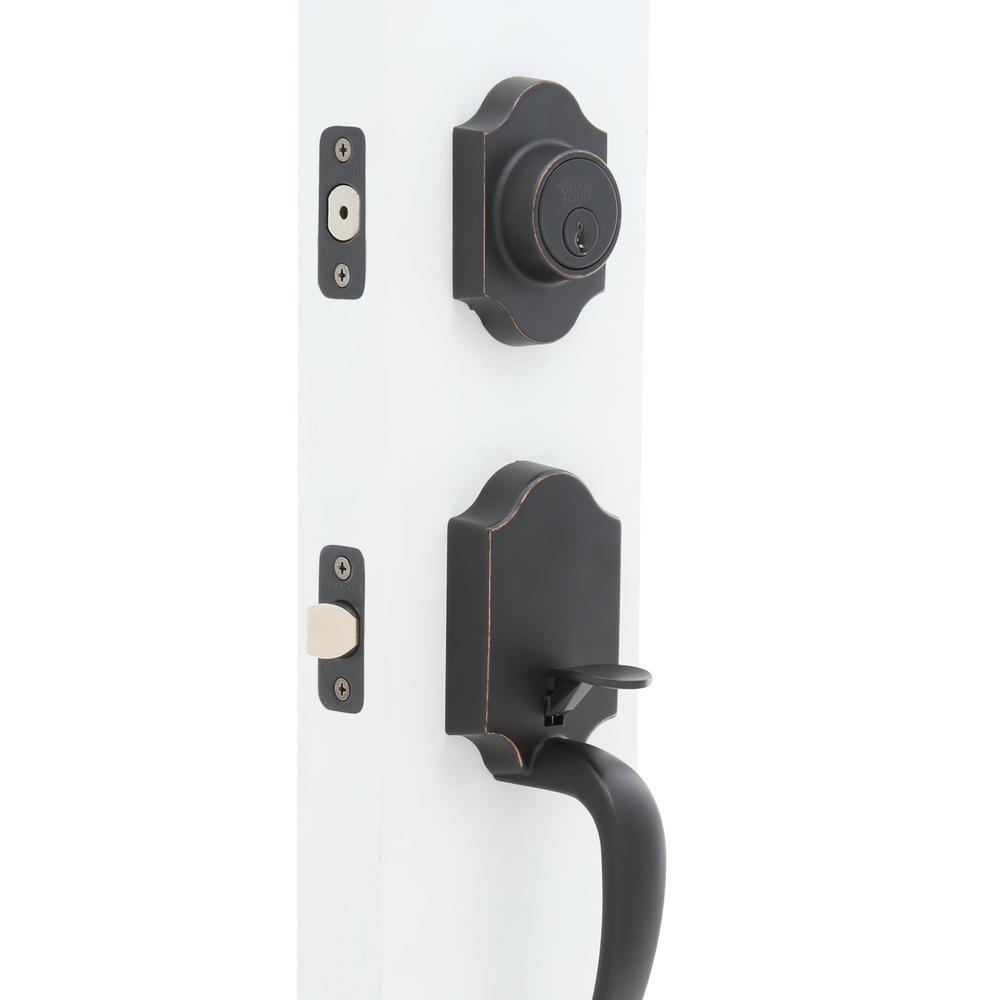 Keep your home or business safe and secure with this combo entry lever and single cylinder deadbolt. The hardware installs on exterior doors that lock with keys from the outside and turn a button from the inside. Single cylinder deadbolts can provide more security than a spring bolt lock and the oil-rubbed bronze finish blends with most any decor. Includes all mounting hardware.