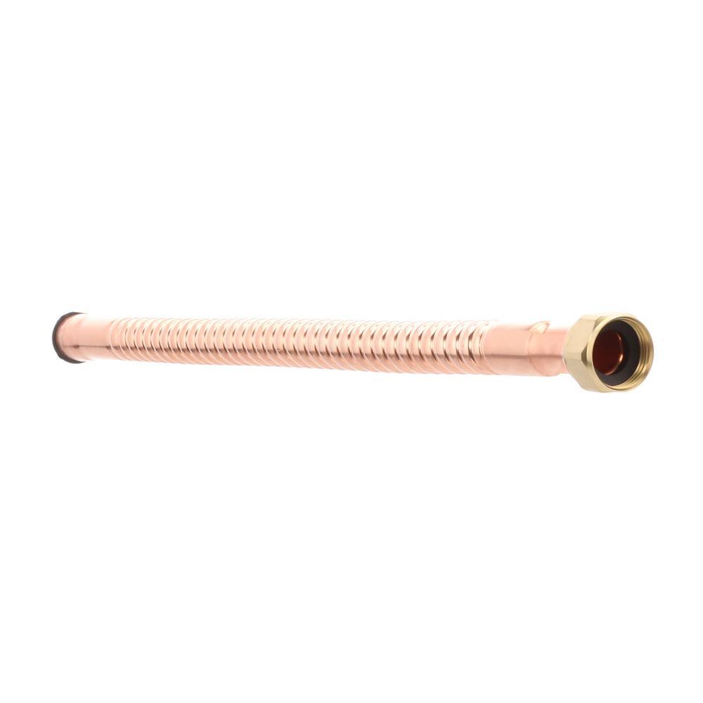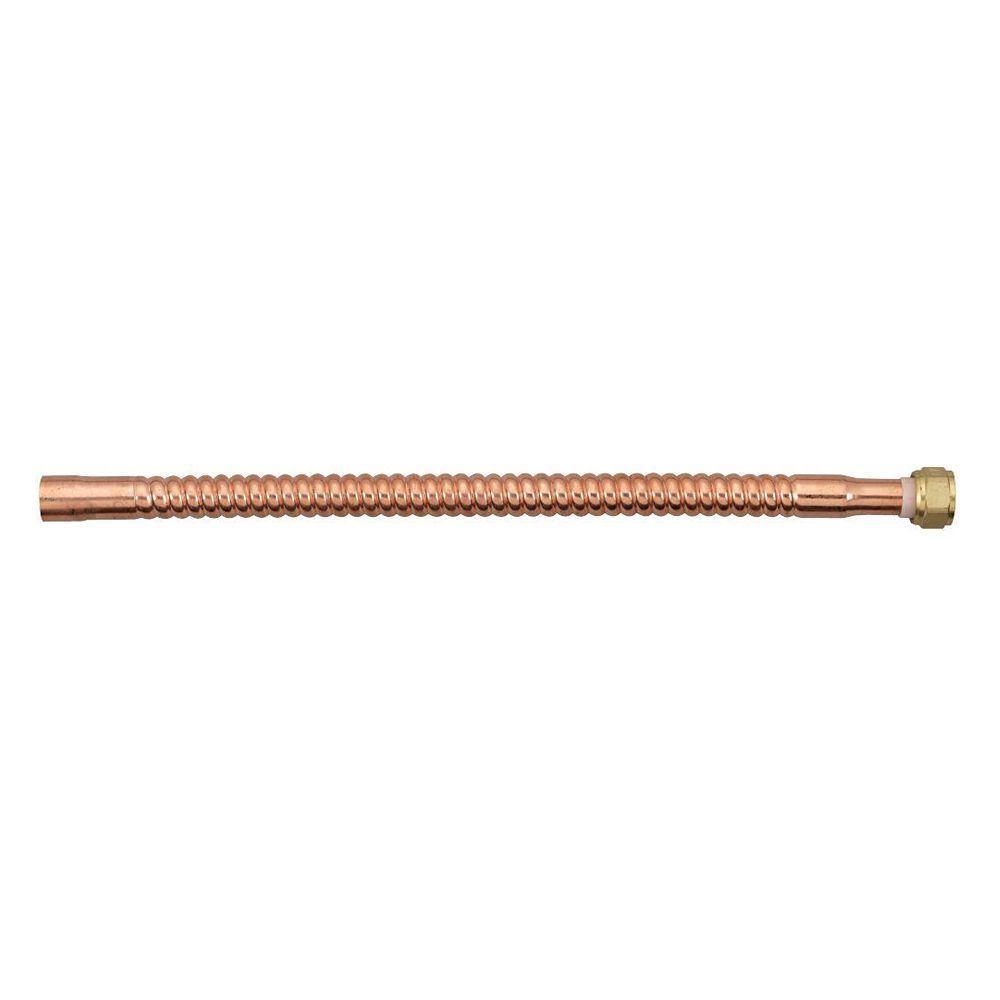The Homewerks Worldwide Copper Water Heater Supply Line connects a water heater to piping with 3/4 in. solder and female-threaded fittings. This 18 in. supply line is corrugated to offer flexibility.