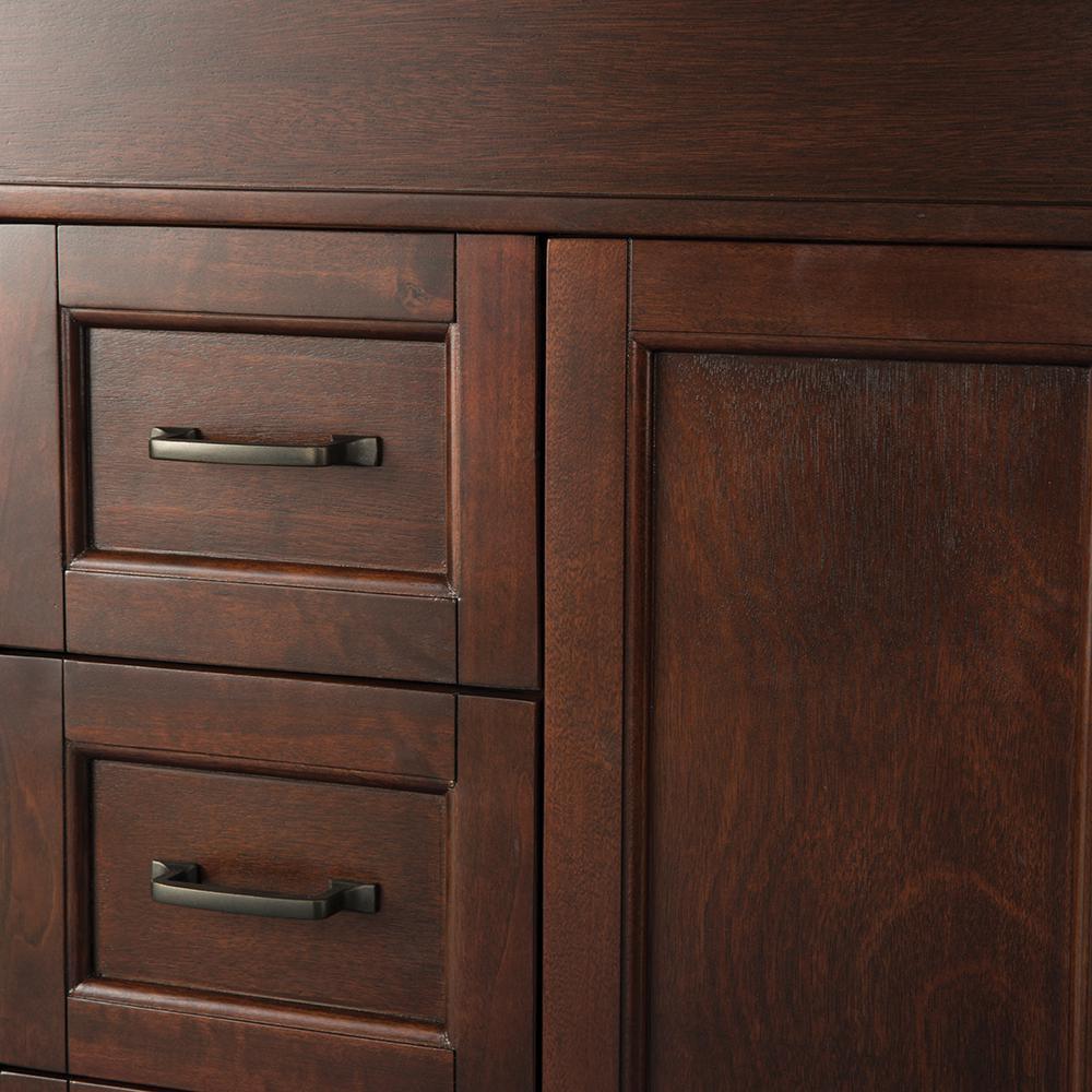 Enrich your bathroom ambience with this upscale 36 in. mahogany vanity that is more affordable than it looks. With a rich, dark finish and a clean, sleek profile, this modern piece has an understated elegance that will impress homeowners and guests alike. Two cabinet doors with soft-stop bumpers and three left-side drawers open up a bevy of storage options for linens and bath essentials, setting the tone for a tidy powder room. The sturdiness and craftsmanship of this vanity cabinet will make you think it is custom-built, while small details like leg levelers instill confidence for perfectly stable setups. Gaze through the Foremost Ashburn collection for complementary mahogany items like wall cabinets and mirrors for a complete bathroom makeover.