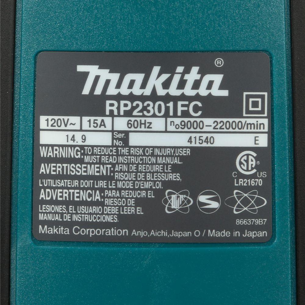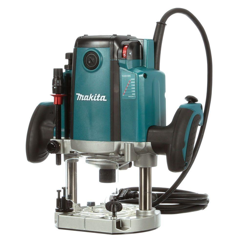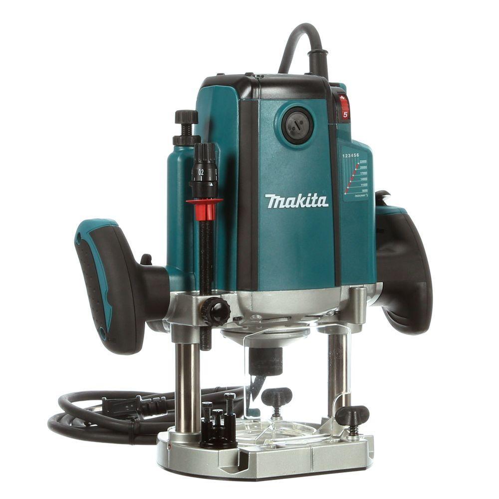 The Makita 3-1/4 HP Plunge Router with Variable Speed delivers power, precision and smooth plunge action. A 15 Amp, variable speed motor with soft start gives you more control and the capacity to tackle a wide range of applications including fine woodworking, cabinetry, doors and more. Electronic speed control helps maintain speed under load. Ergonomic, rubberized handles add comfort. A built-in, large two-finger trigger switch locks on for continuous operation.