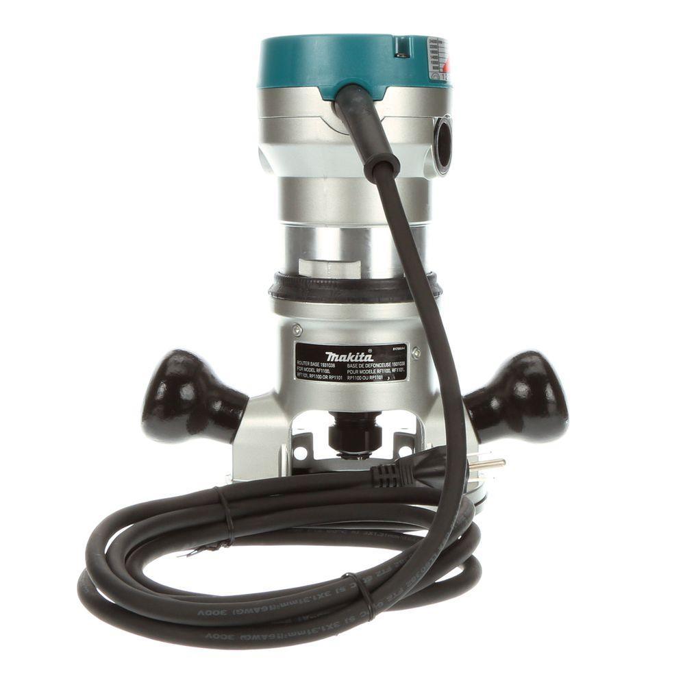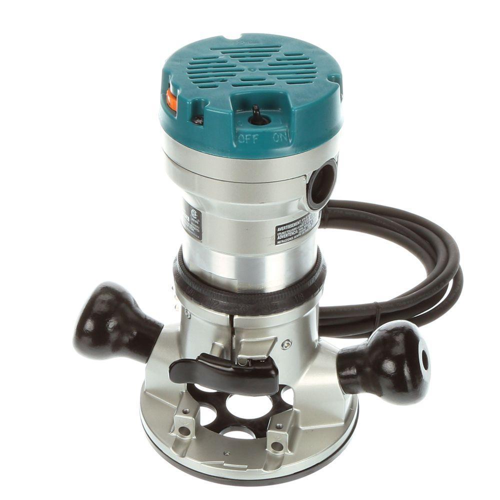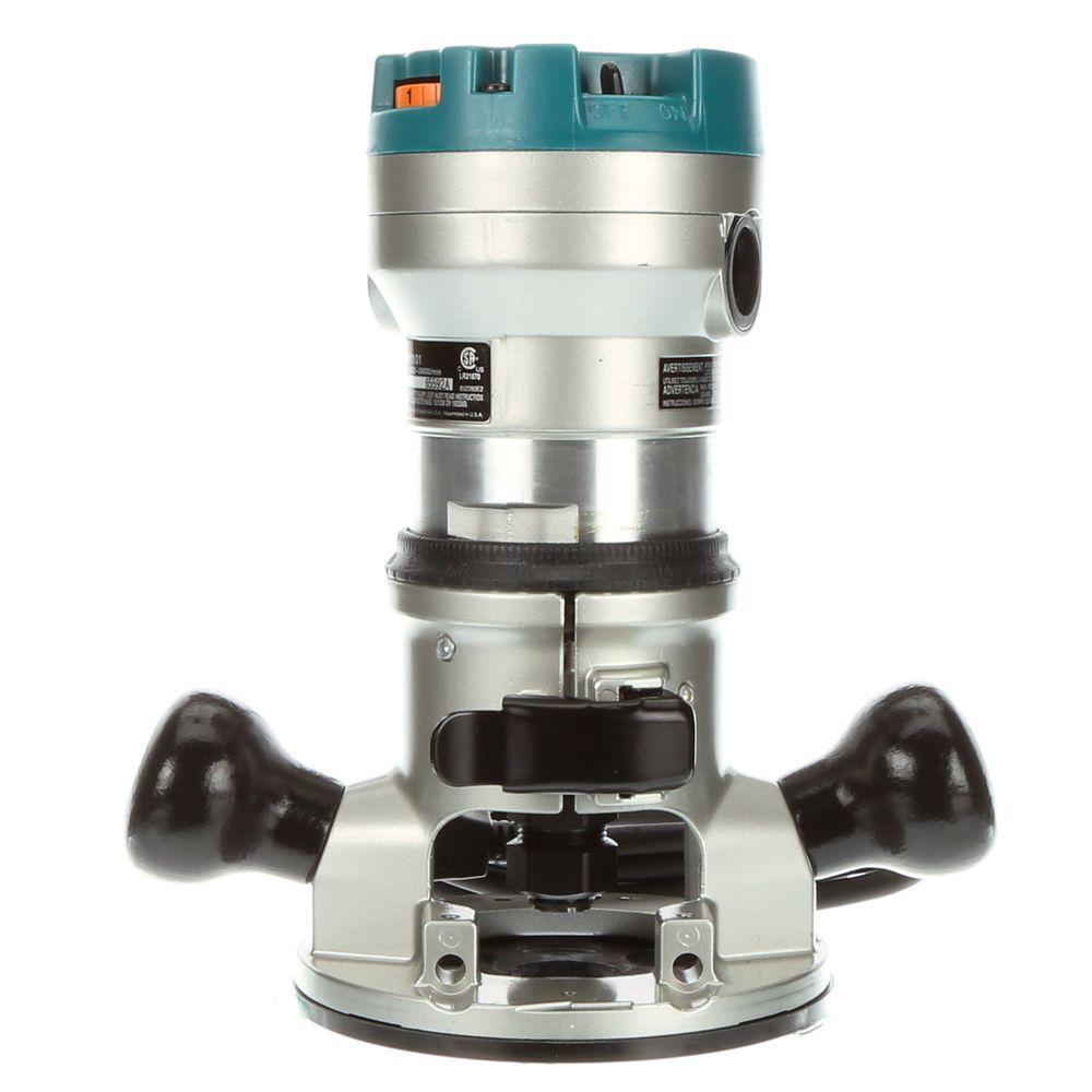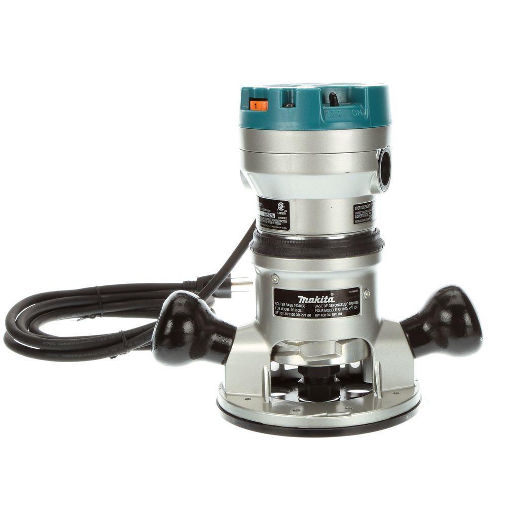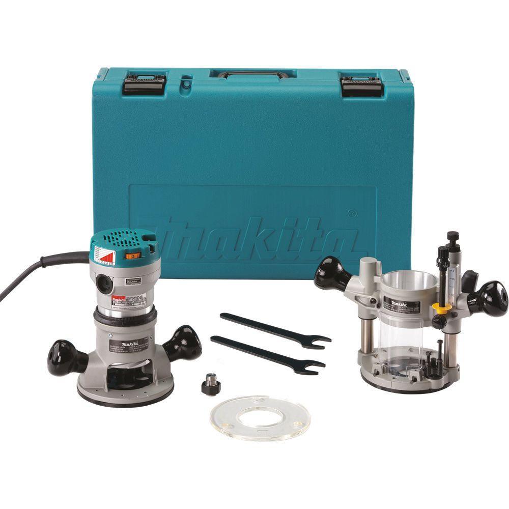 The Makita 2-1/4 HP Router Kit combines power with ease of use plus the most popular accessories in one convenient kit. It features an 11 Amp motor with soft start for smoother start-ups. A variable speed control dial lets you match the speed you need to the application. Rugged aluminum motor housing fits in a slender 3-1/4 in. Dia. with two, all-wood handles for a compact design with more control.