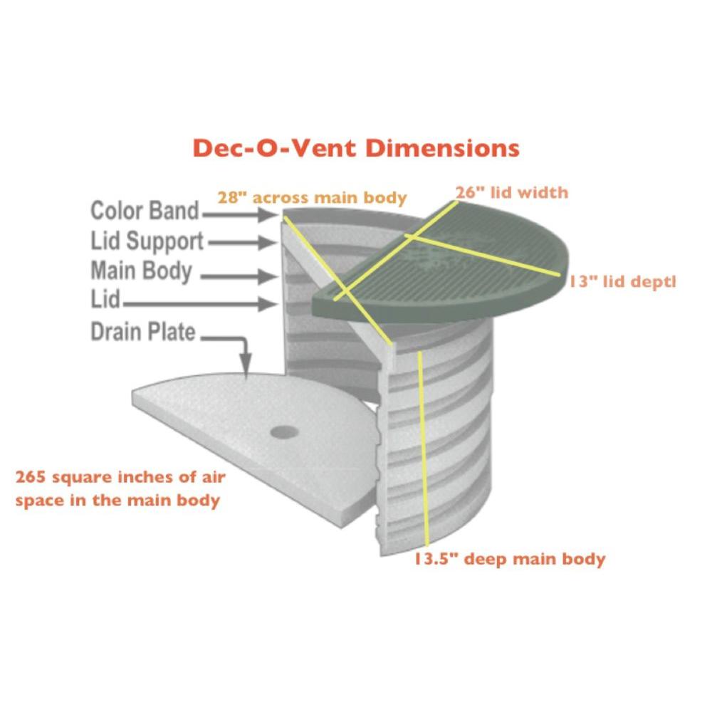 • Dec-O-Vent unit has a lid, color band, main body, support bar and a drain plate
