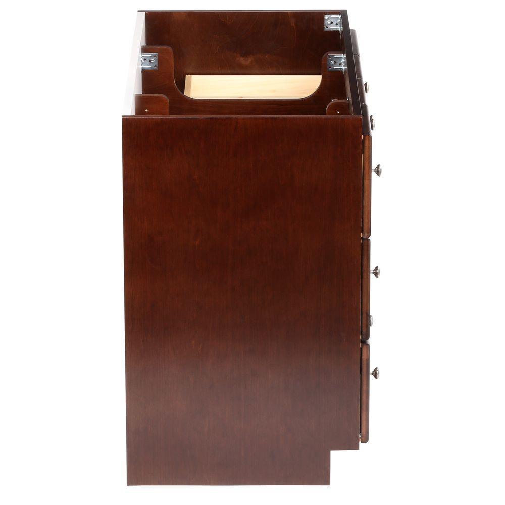 Offered in a dark alder finish, this Simplicity by Strasser Woodenworks Ultraline vanity is a solid value with attractive style, attention to detail and quality workmanship. Every one of our vanities maximizes usable storage space and has a unique drawer under the doors. Classy satin nickel finish knobs are solid cast metal and already installed. With quality durable hardware, doors and drawers close smoothly and keep snugly closed, plus are easily adjusted for exact door and drawer alignment. Vanities, drawer banks, medicine cabinets, wall storage in the form of cubbies and overjohns and mirrors make up the Simplicity collection. They are, of course, designed to perfectly complement each other so you can create your perfect bath furniture ensemble. Strasser Woodenworks introduced the Simplicity brand for homeowners seeking quality bath furnishings that are stylish, budget friendly and crafted in USA.