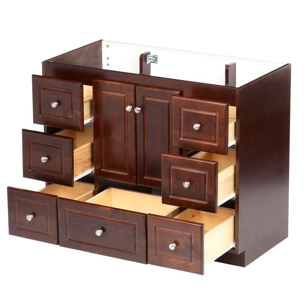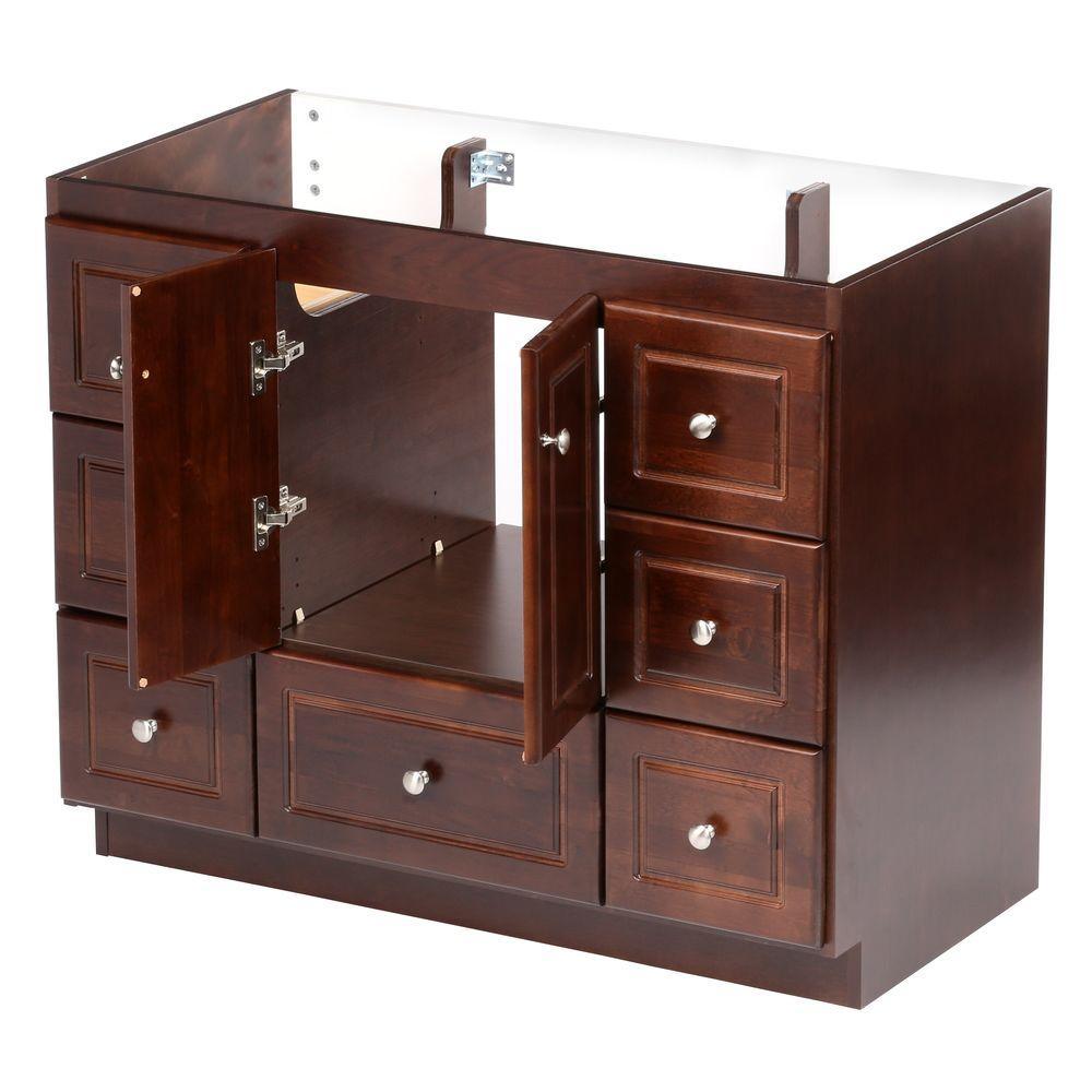 - Accommodates a 43 in. W x 22 in. D top with center basin (top and faucets not included)