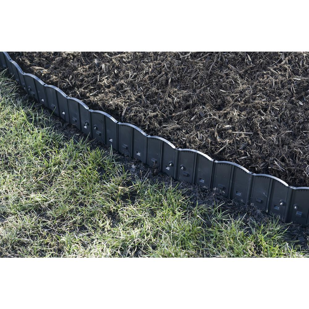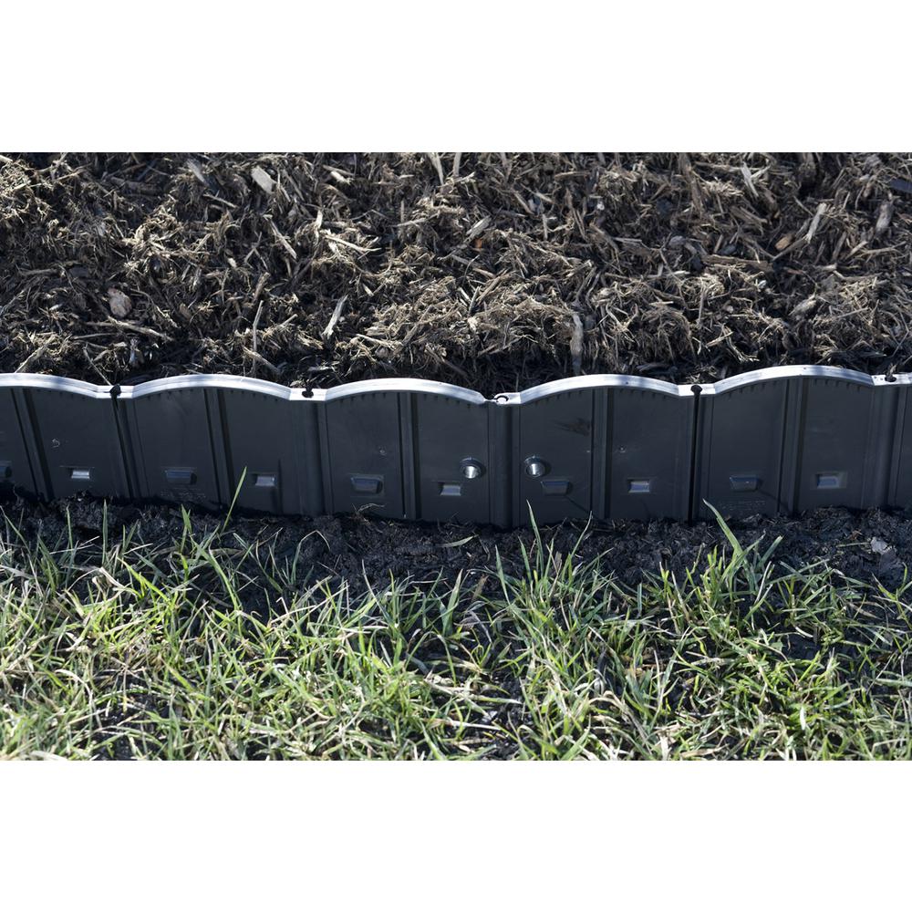 HammerEdge is strong durable plastic piece edging that is easy-to-install with a hammer or mallet. With a "Shark Tooth" cutting design, HammerEdge will penetrate all soils, eliminating the need for trenches. Interlocking sections connect and easily lets you create your own design with corners, arcs or straight edges. Installation for 18ft. of coverage (16 pieces). Can be used for landscapes, along driveways, paths or any other garden project.