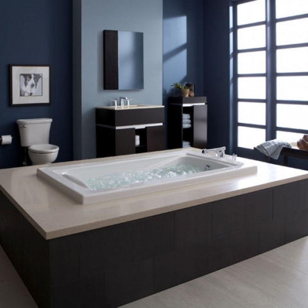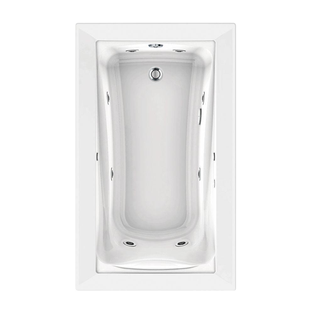 Luxury, pure and simple. This modern acrylic tub's EcoSilent Whirlpool System is 50% quieter than regular Whirlpools. Includes 8 adjustable jets, molded neck support and armrests, a 1.4 HP one-speed pump/motor, 2 silent air volume controls and our antimicrobial EverClean system that protects pipes from mold and mildew. Enjoy total relaxation in the hushed environment provided by our revolutionary EcoSilent Whirlpools. Featuring the EcoSilent Whirlpool pump, these luxurious ultra-quiet, ultra-efficient Whirlpools use 45% less energy than standard Whirlpools. Combined with the antimicrobial EverClean system, silent air controls and multidirectional adjustable jets, EcoSilent Whirlpools melt your stress away. Required Universal Drain (Model 1583.470) sold separately.