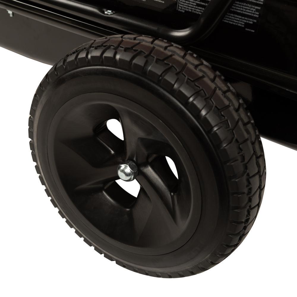 Flat-free wheels, convenient front and rear lift handles help provide portability