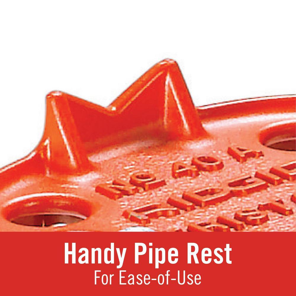 • Pipe vise's integral legs and tray fold in for easy carrying and setup