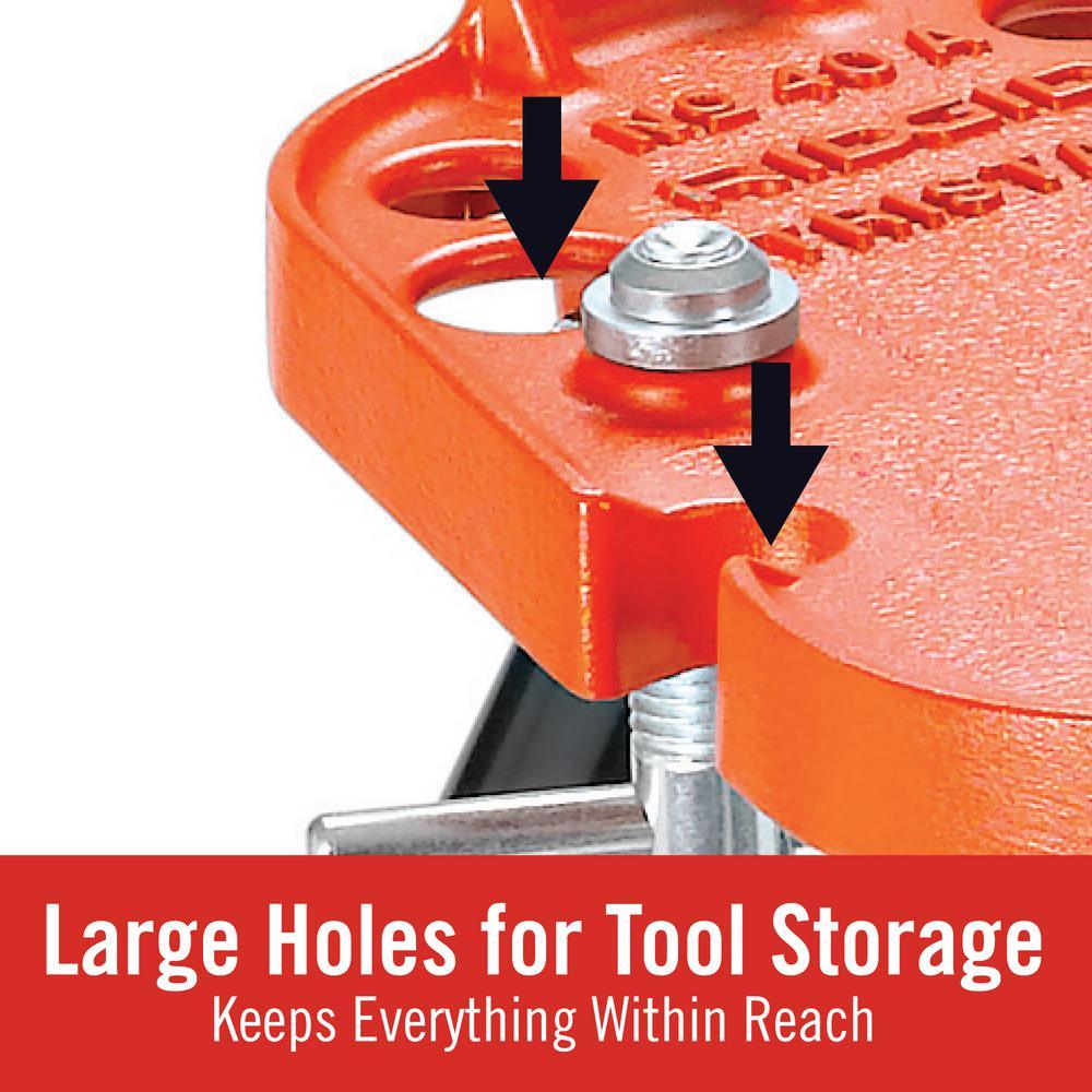• 40A Tristand integrates a yoke-style vise into the base along with a rugged tool tray for added convenience