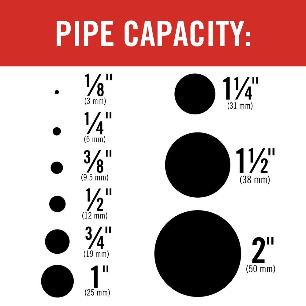 - Manual pipe threading kit ideal for 1/8 in. to 2 in. steel pipe