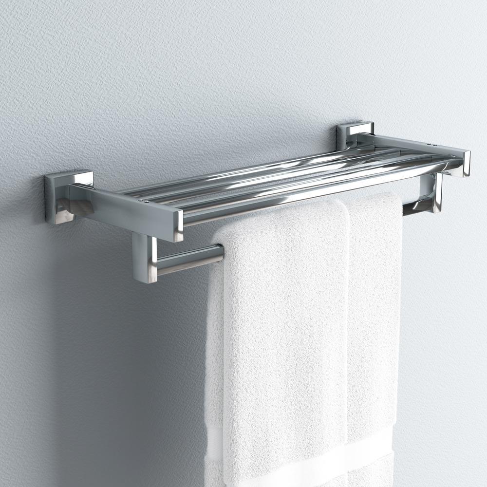 Century 24 in. W Towel Shelf with Towel Bar in Bright Stainless