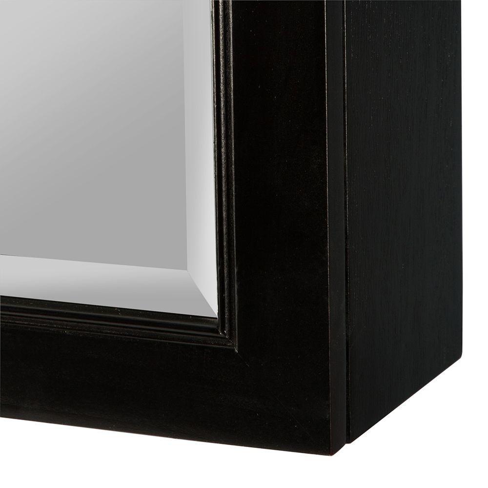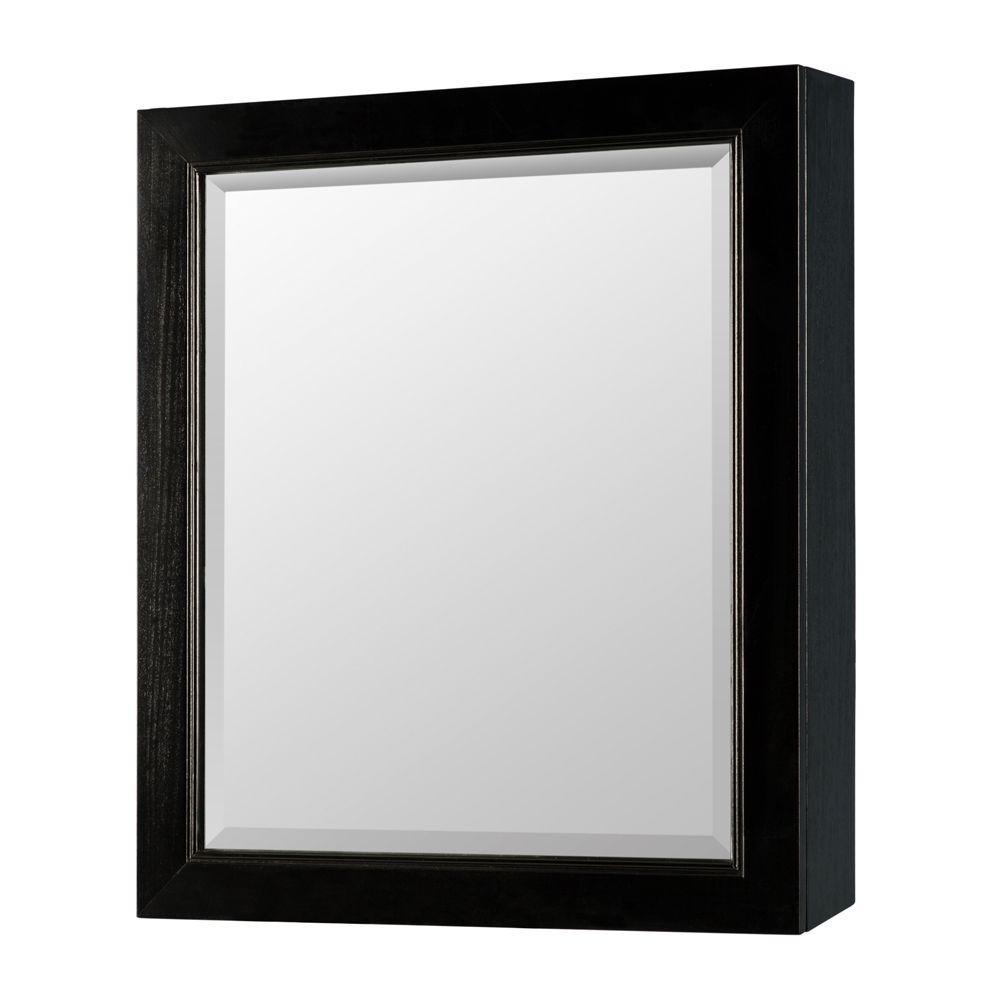 Finished in a dark espresso, the Gazette 22 in. x 26 in. poplar framed medicine cabinet has a distinctively modern feel. The attractive medicine cabinet features the Secure-Mount hanging system for easy mounting and leveling. It is capable of being hung with a right or left hand mirror swing. In addition, it includes two adjustable hinges and shelves for customization to suit your needs. Screws, anchors and shelf bins are conveniently included.