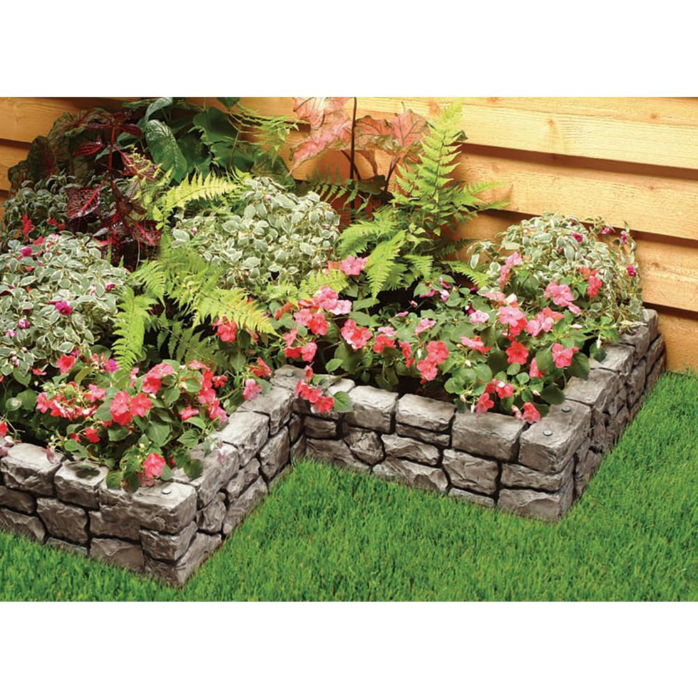 Stonewall Border is easy-to-install with no digging or pounding required. Realistic, three-dimensional stacked stone is a slate gray color 6 in. high and 10 ft. long. Due to the nature of the hand-painting process, color variation will occur.