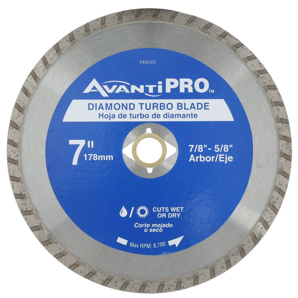 The AvantiPRO 7 in. Turbo Diamond Blade provides the best cutting performance and long life for all of your DIY projects. Use the turbo rim blade for fast and smooth cuts on concrete, brick, block, stone, and stucco. This blade will fit most 7 in. angle grinders and circular saws.