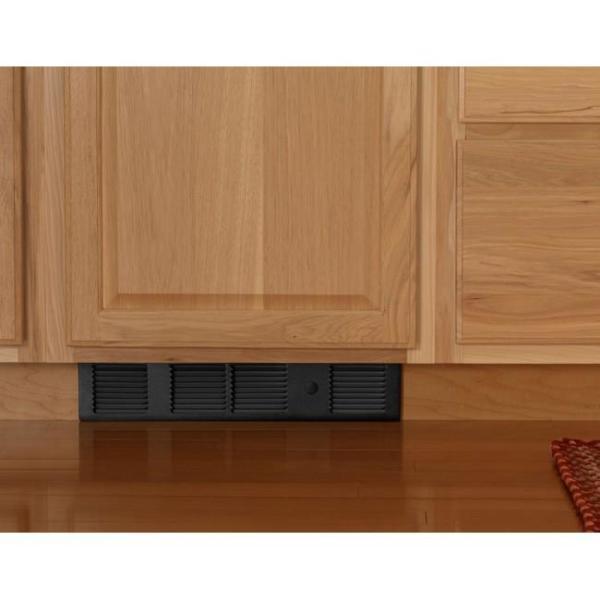 Don't let lack of wall space keep you from staying warm. The 1,000-Watt Black Perfectoe wall heater is an ideal solution for installing under cabinets in kitchens or bathrooms or even in a stairwell, fireplace hearth or recreational vehicle. Only 3.5 in. of height required. Choose a unit-mounted or wall thermostat to control this heater (sold separately).