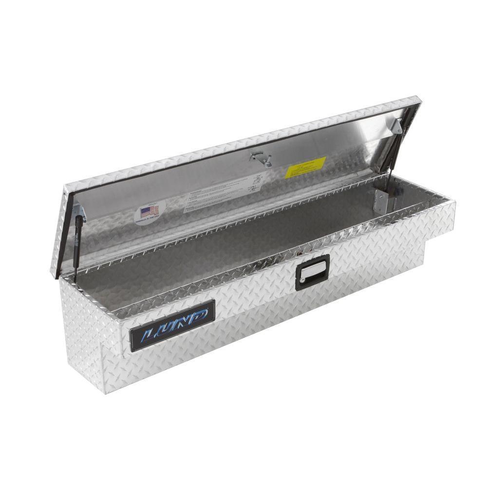 Lund 48 in Full or Mid Size Full Lid Aluminum Side Mount Truck Tool Box with mounting hardware and keys included, Silver