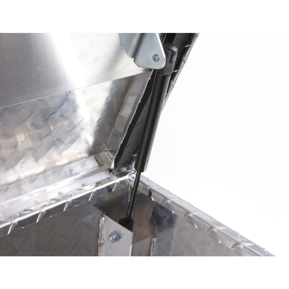The 9748 is made of 0.060 in. aluminum. Side bin truck box that provides the extra room you need for an efficient, effective storage solution. Sturdy double latch paddle handles. Keyed locks protect valuables. Heavy-duty gas shocks provide smooth opening every time.