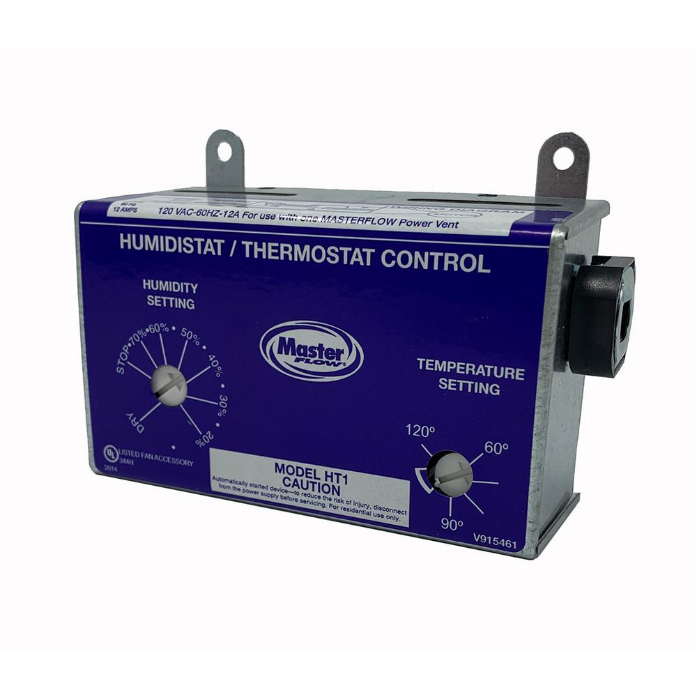 The GAF Master Flow adjustable Humidistat/Thermostat Combo works with GAF Master Flow EGV/ERV Series Vents. It works in harmony with your powered vent to help control damaging moisture. It also reduces heat accumulation and buildup in your attic. And is fully adjustable for varying climates.