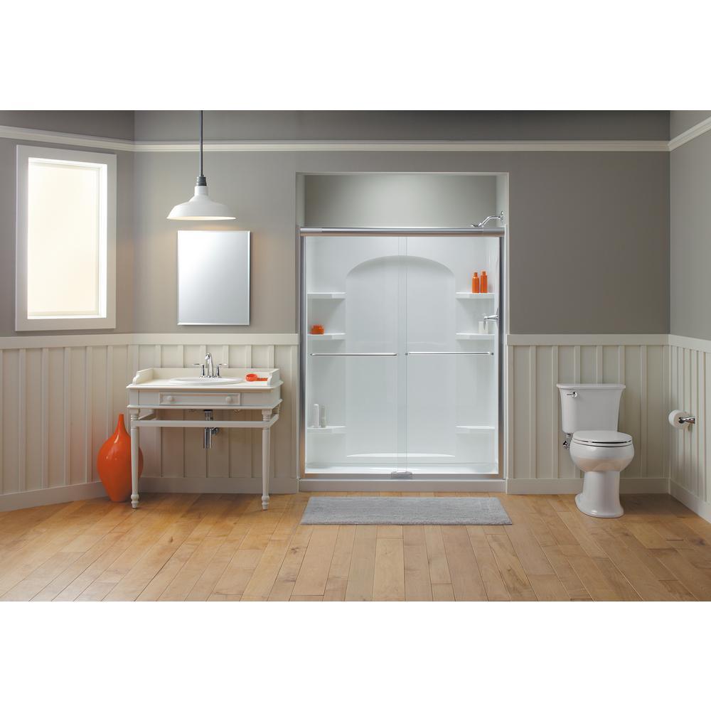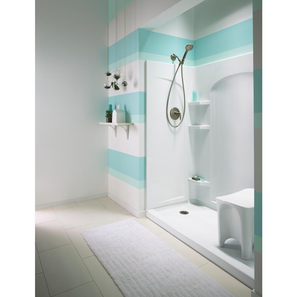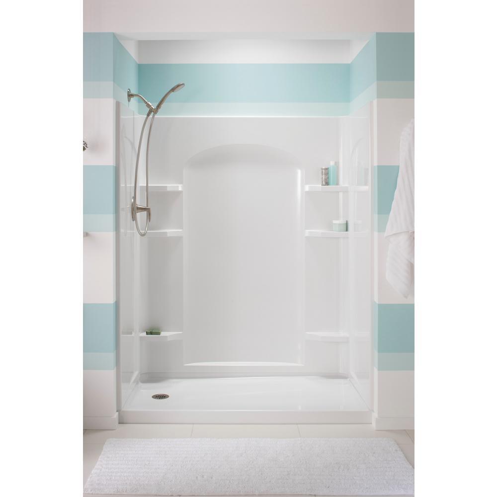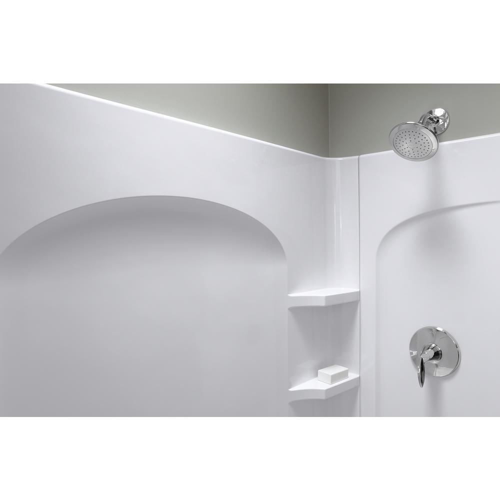 Ensemble 60 in. x 1-1/4 in. x 72-1/2 in. 1-piece Direct-to-Stud Shower Back Wall is made from solid Vikrell material for strength, durability and lasting appeal. The modular design makes it easier to move around corners and through doorways and the tongue-and-groove design snaps together for quick installation. Durable high-gloss finish provides a smooth, shiny surface, easy to clean.