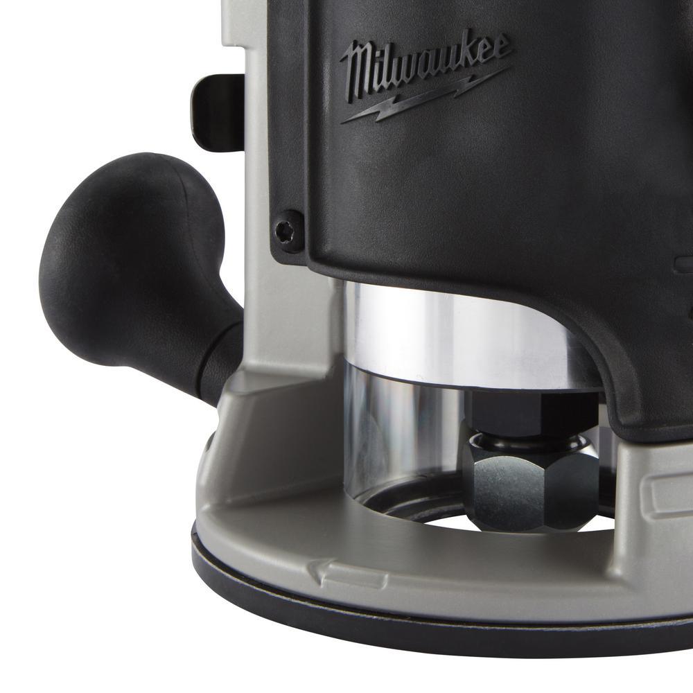 The Milwaukee 1-3/4 Max HP BodyGrip Router features a fast and accurate linear depth adjustment system and a patented above-the-table depth adjustment mechanism. Powerful and precise with a 1-3/4 max hp (11 amp/24,000 RPM) Milwaukee motor, this tool has a comfortable overmold rubber grip with an adjustable hand strap for left and right-handed operation and 2 over-molded palm-grip side handles for superior comfort, maneuverability and control. The linear depth adjustment features a large steel motor lock lever and depth adjustment gearing via a durable threaded screw integral to the motor and both course and micro fine adjustments are fast and accurate. The router sub-base includes a special access hole for a common 3/8 in. hex extension wrench for above-the-table depth adjustments for router table applications and also eliminates the nuisance of reaching beneath the table to set the cutter or bit height. Durably made for years of reliable use, this heavy-duty router gives you the upper hand on comfort and control.