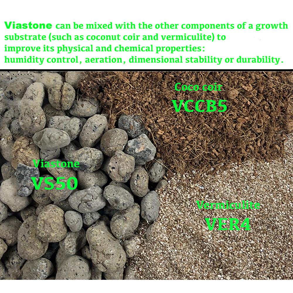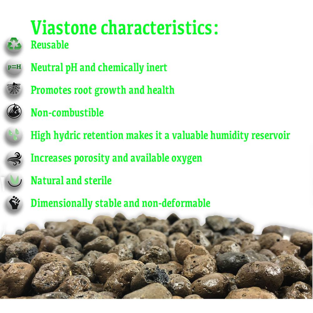 ViaStone, an incredibly resourceful growing material, is derived from clay. Clay itself is renewable and plentiful making ViaStone a premium growing medium due to its ecologically sustainable quality. Use ViaStone virtually anywhere: the greenhouse, in propagation systems, for outdoor gardening, around shrubs and trees, as compost aeration, or as a hydroponic growing medium. When estimating necessary amount of ViaStone for your particular application understand that the 50 l and 10 l quantity is based on the standard Horticultural trade gallon - 0.71 U.S liquid gallons.