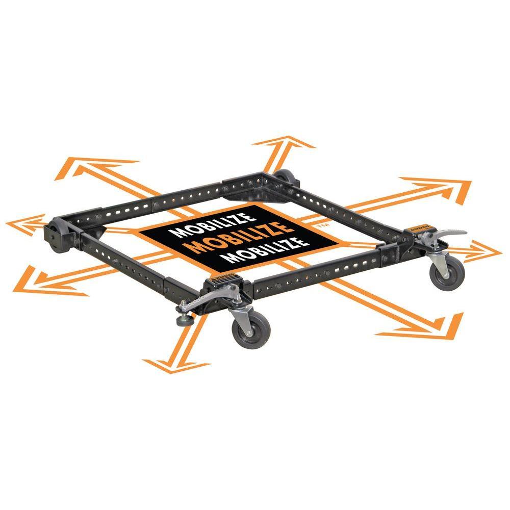 With the PORTAMATE PM-1000 adjustable mobile base, size is no longer an issue. Fully adjustable mobile base features side rails and corner pieces with holes spaced every 1 in. to ensure the perfect fit for your machine. Move band saws, table saws, sanders, drill presses, jointers, planers and much more. Holds machines up to 400 lbs.