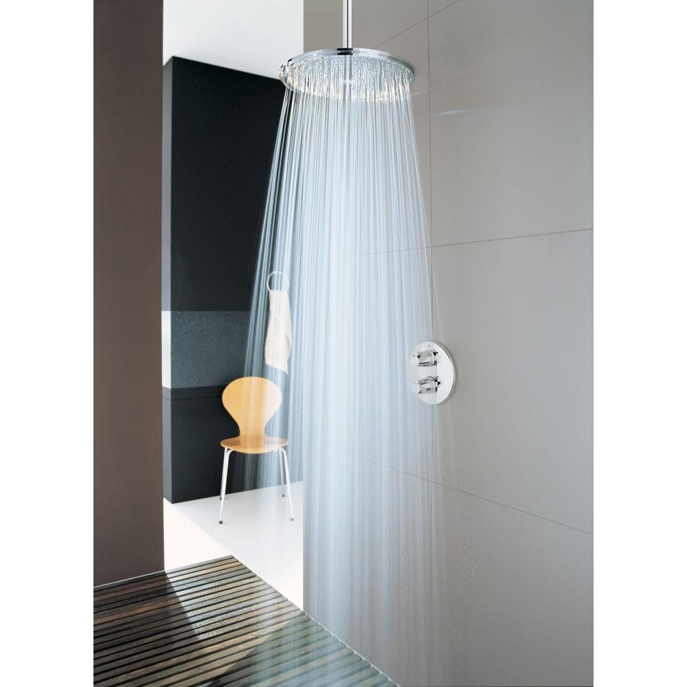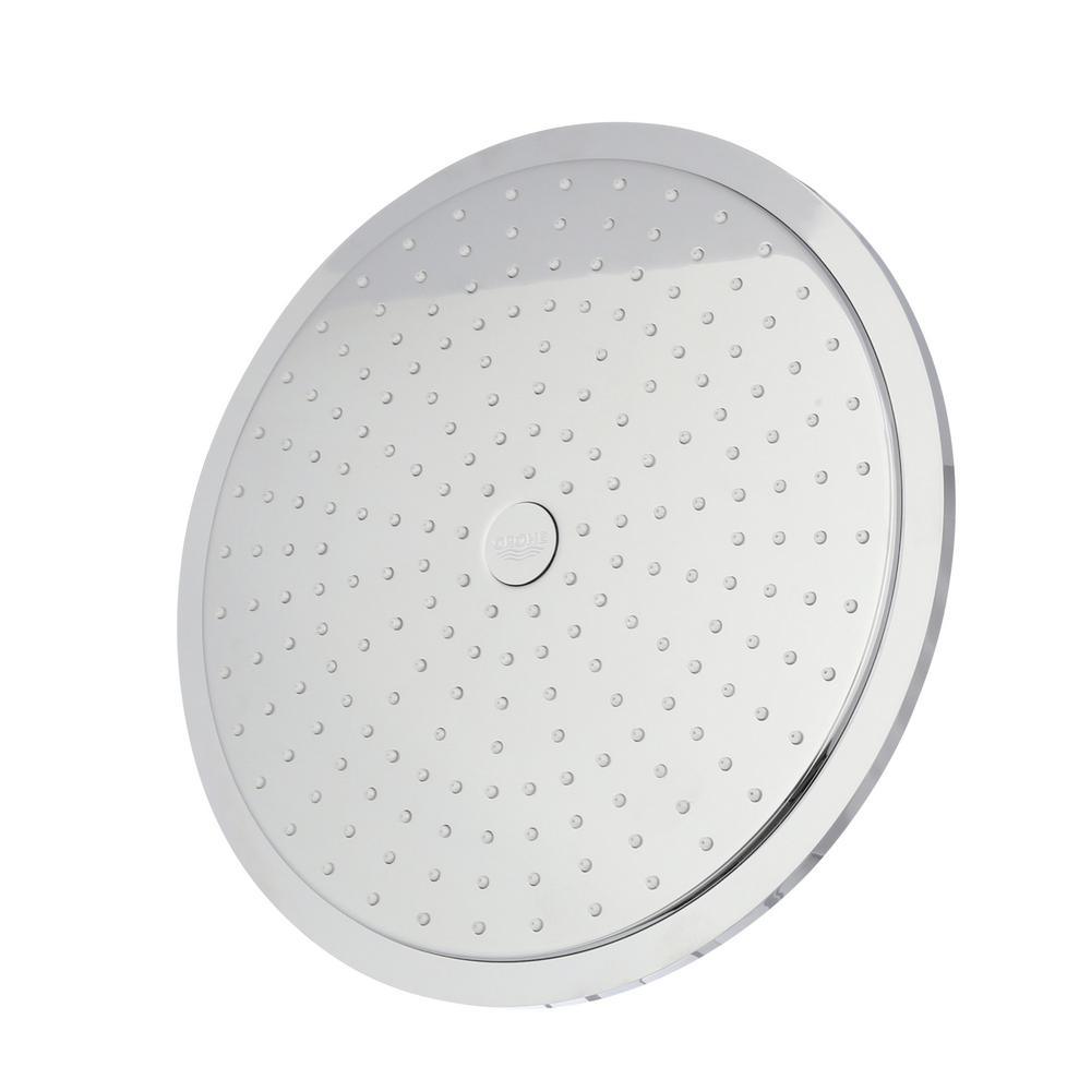 Relaxation comes easy with the Rainshower Cosmopolitan 310 12 in. showerhead. Though streamlined in look and slim in profile, it is high-tech-driven to provide soothing showers on demand. Oversized, it features a 12 in. Dia spray face with 208 spray nozzles and GROHE DreamSpray features advanced shower engines to deliver precise and consistent water distribution throughout any spray pattern for an unparalleled and custom showering experience technology, which optimizes water distribution for consistent coverage. GROHE SpeedClean protects the spray nozzles against limescale buildup making cleaning effortless. The showerhead has a flow rate of 2.5 GPM at 80 psi and is recommended for use with a variety of GROHE Rainshower shower arms. Equipped with a ball-and-socket joint, it can be adjusted by hand to aim the water for more targeted showering. The Rainshower Cosmopolitan 310 showerhead is available in scratch-resistant, non-tarnishing GROHE StarLight finish for scratch and tarnish-resistant surfaces for a lifetime of beauty chrome, which will maintain its mirror-like shine for years to come.