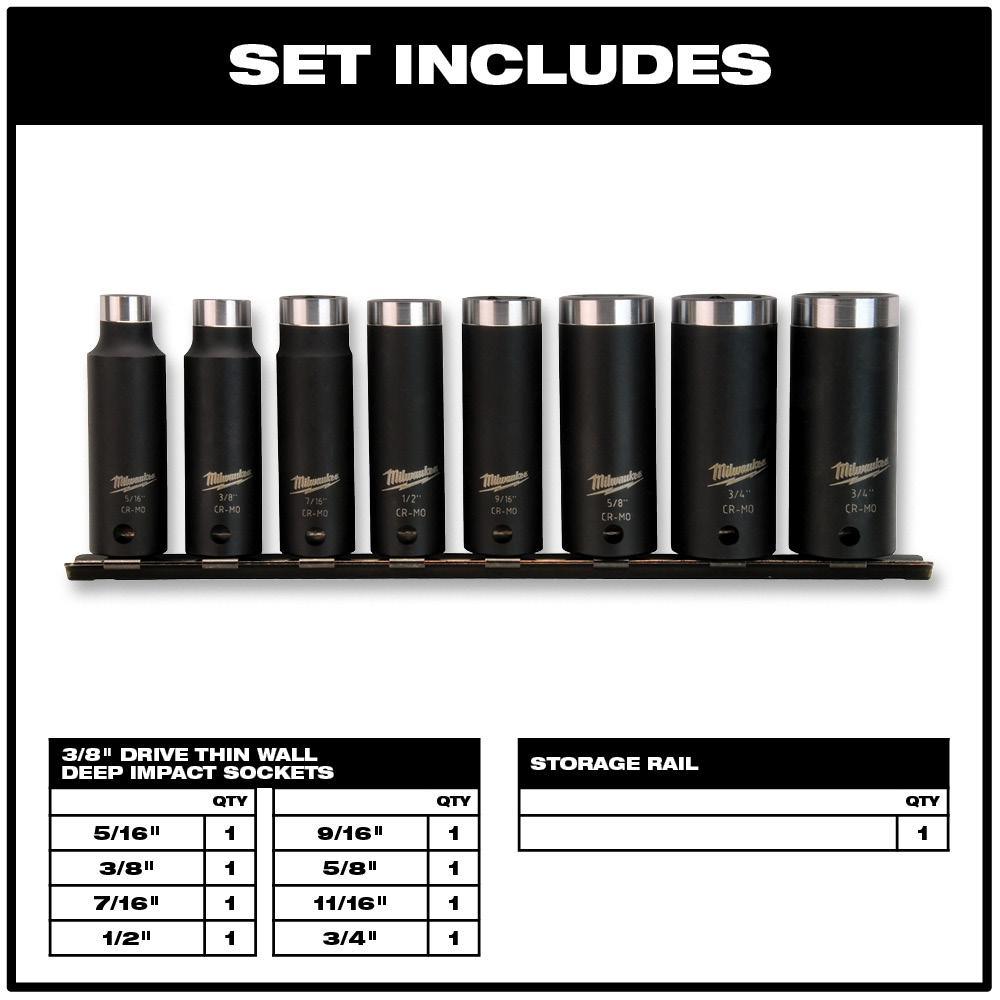 3/8 in. Drive SAE Shockwave Deep Well Impact Socket Set (8-Piece)