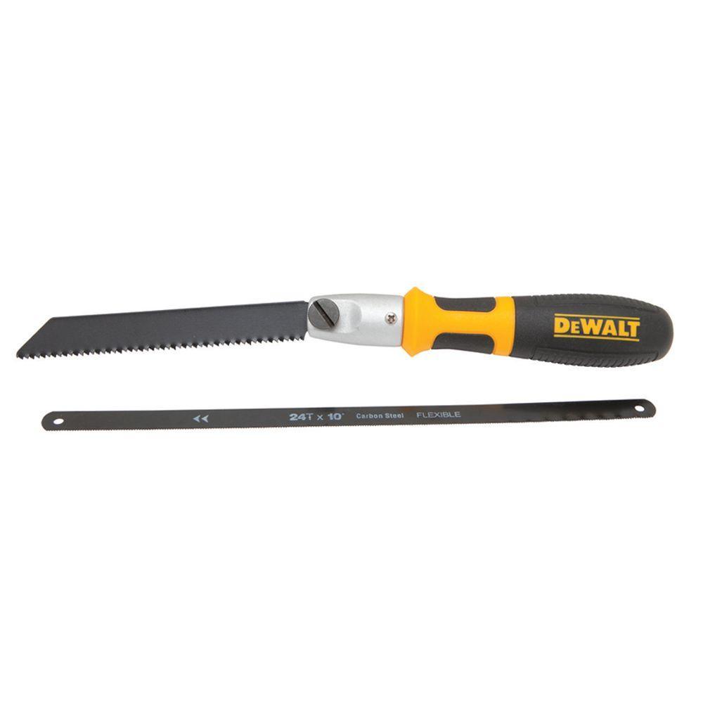 The DEWALT Multi-Purpose Saw utilizes a quick blade change design making quick and simple blade changes possible on job site locations. This saw is compatible with most reciprocating saw and handsaw blades. The saws versatility makes cutting through various materials hassle free.