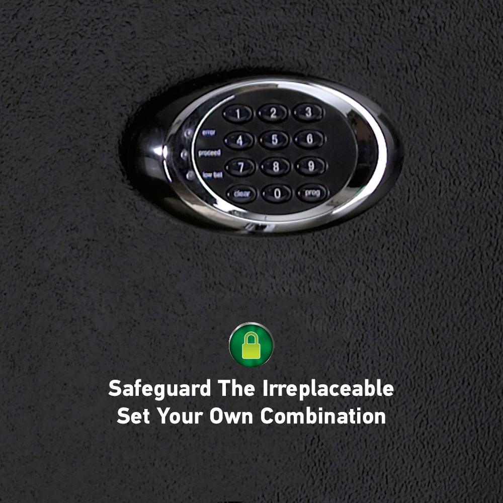 • Set your own digital combination safe for strong security; fire safe features seven bolts, solid steel construction, bolt down hardware, and a thicker door for advanced protection against theft; California DOJ certified gun safe