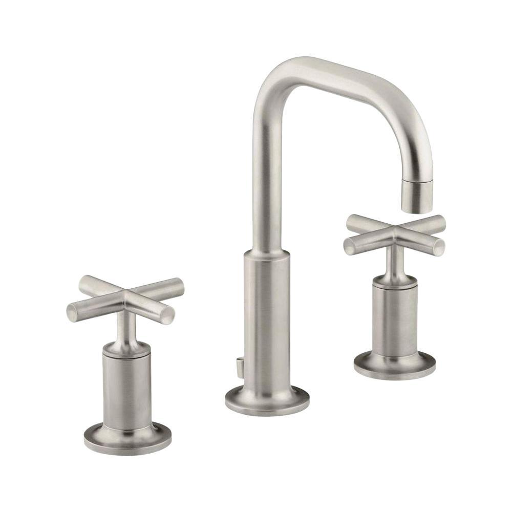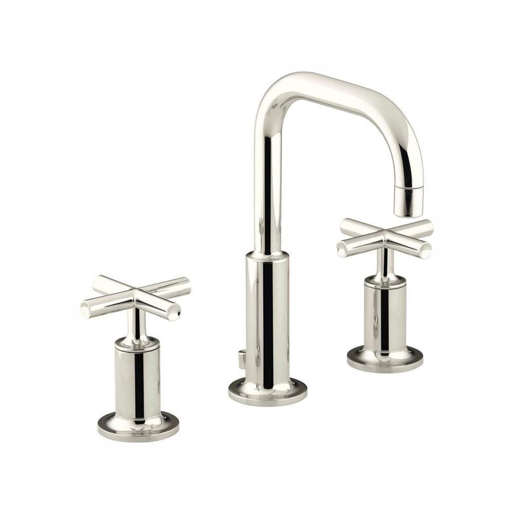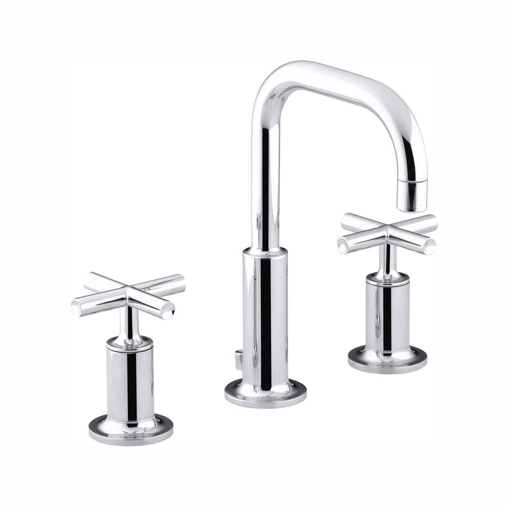 Combining architectural forms with sensual design lines, Purist faucets and accessories bring a touch of modern elegance to your bathroom. This sink faucet exemplifies the Purist Suites understated style, with its low gooseneck spout and cross handles. Easy-to-install and leak-free UltraGlide valves provide reliable performance and durability. And the spout features laminar flow, which helps conserve water while preventing splashing.