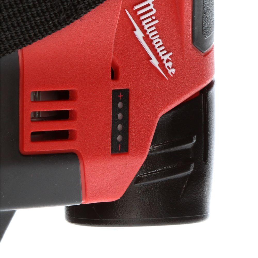 The Milwaukee M12 12-Volt Lithium-Ion Cordless Palm Nailer (Tool-Only) is a portable solution for professional nailing applications in places unreachable by a traditional nail gun. Its powerful impacting mechanism delivers 2.2 ft. lbs. of blow energy and with the M12 REDLITHIUM battery pack (sold separately), produces exceptional work per charge and superior performance in jobsite conditions. Featuring a 6D-16D magnetic collet for a secure hold on nails for easy 1-handed use, this tool has an ergonomic design for superior comfort and control no matter how long the job lasts. Loaded with convenience features, including a built-in LED light, an onboard fuel gauge and a hand strap for added safety, this tool will provide years of reliable use with its durable reinforced steel and all-metal housing.