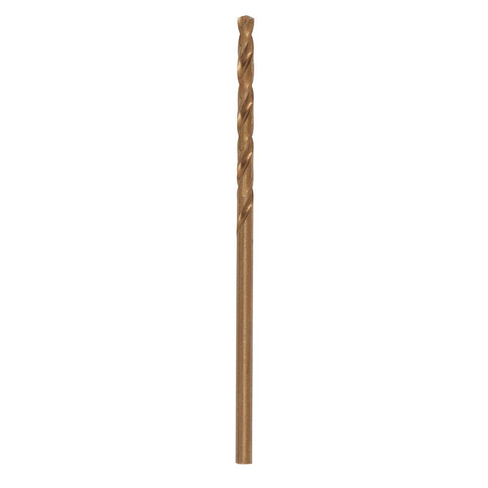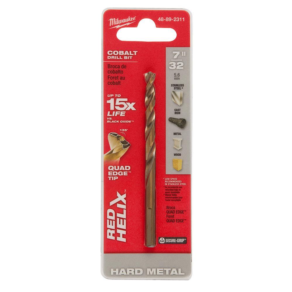 The MILWAUKEE RED HELIX Cobalt 1/8 in. Drill Bit are engineered for extreme durability and longer life in hard metal applications. The Milwaukee Cobalt drill bits are designed with a VARIABLE HELIX that includes an aggressive 35° Helix Angle which ends at 15°. The 135° split point tip delivers a precision start and prevents walking for fast, accurate holes in Hard Metal, PVC and wood.The tapered drill bits feature a new ENHANCED TAPERED WEB that strengthens the bit's core to increase flute durability. The cobalt twist drill bits are ideal for tough applications, providing up to 15X life vs. Black Oxide Drill Bits.