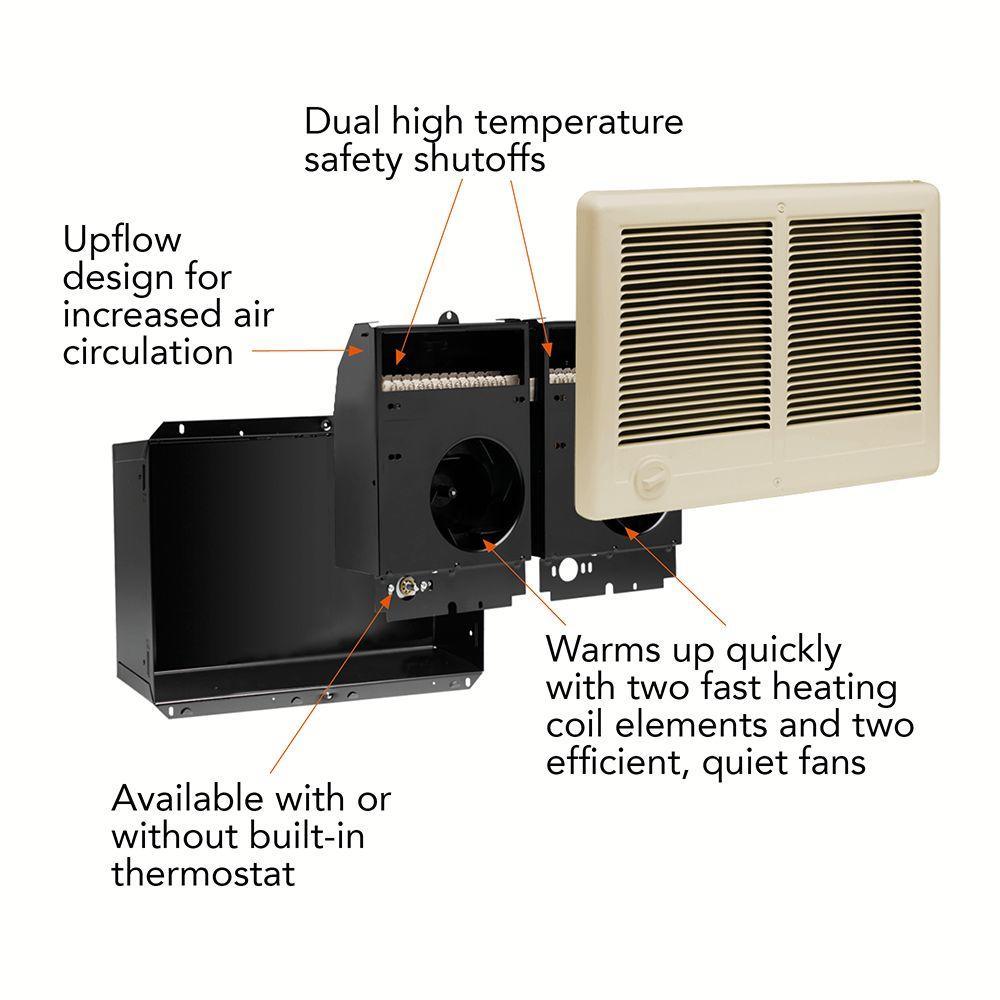 Com-Pak Twin 4,000-Watt 240-Volt Fan-Forced In-Wall Electric Heater Almond
