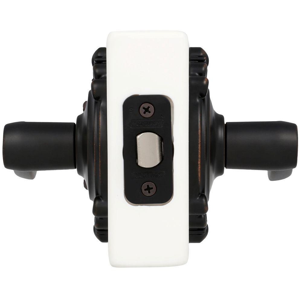 The Schlage Flair Aged Bronze Passage Door Lever with Brookshire Trim is perfect for use on hall and closet doors where locking is not needed. The elegant Flair lever’s ornate details are reminiscent of a paper scroll. The elaborate Brookshire trim features ornate details and an opulent design aesthetic. The Aged Bronze finish is inspired by traditional design, featuring warm, copper tones that break through its darker, aged exterior. The universal design of this passage door lever set allows it to be mounted to left or right swing doors. Plus, it’s been designed and tested with strength and durability in mind.