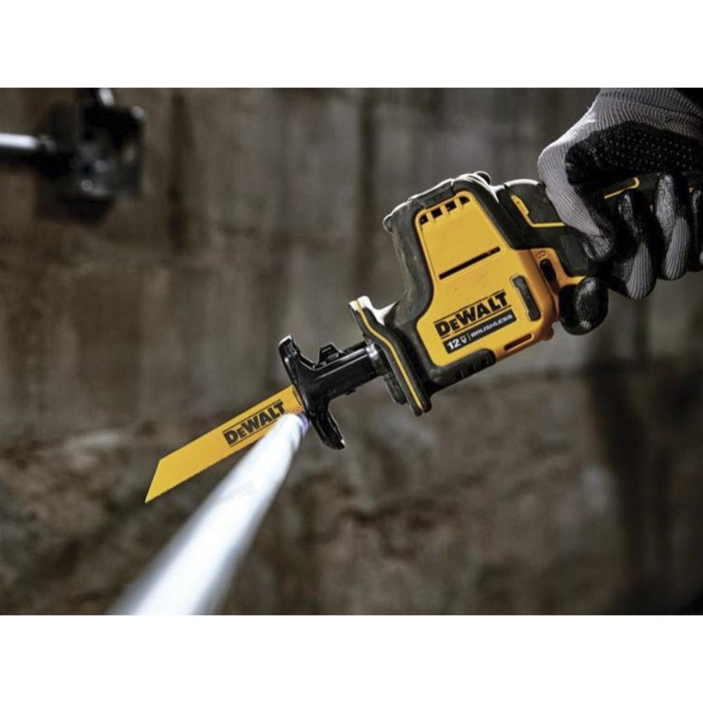 Reciprocating saw blade combination set provides a selection of blades for common applications, including metal and wood cutting. Anti-stick coating minimizes friction and gum-up. Tough case or Expandable case holds blades and is designed to fit in power tool kit box.