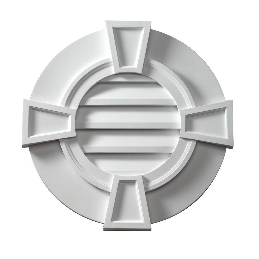 36 in. x 36 in. Round White Polyurethane Weather Resistant Gable Louver Vent