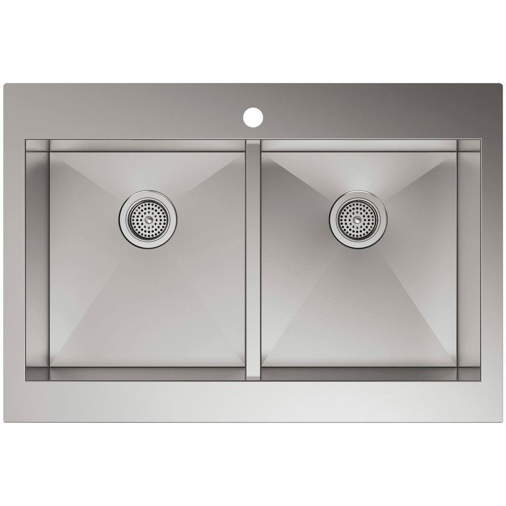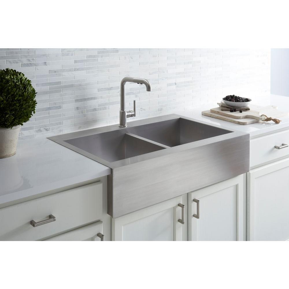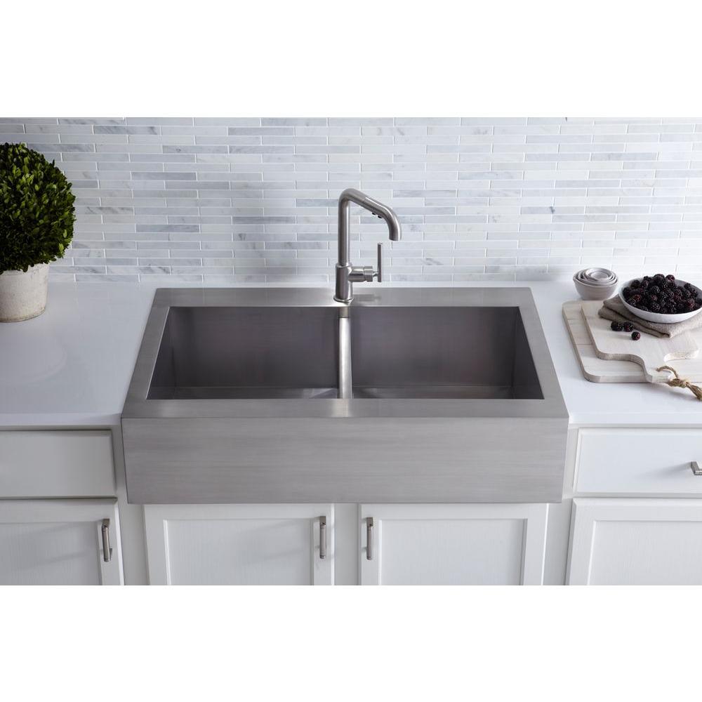 Vault Farmhouse Drop-In Apron Front Self-Trimming Stainless Steel 36 in. 1-Hole Double Bowl Kitchen Sink