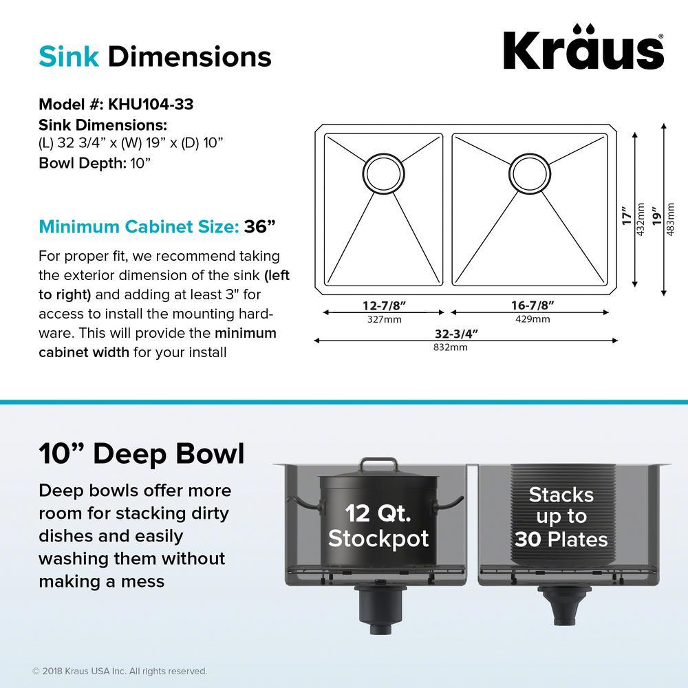 KRAUS kitchen sinks are known for excellent quality and sturdy construction. The Premier Collection sinks are the perfect combination of quality, durability and convenience. Made from durable T-304 stainless steel, this undermount sink can easily stand up to constant use and handle your toughest kitchen tasks. Enjoy the advantage of high-end kitchen sinks with the best-selling Standard PRO Series. This KRAUS sink features a clean contemporary design and wear-resistant finish with a beautiful sheen that complements most kitchen appliances.