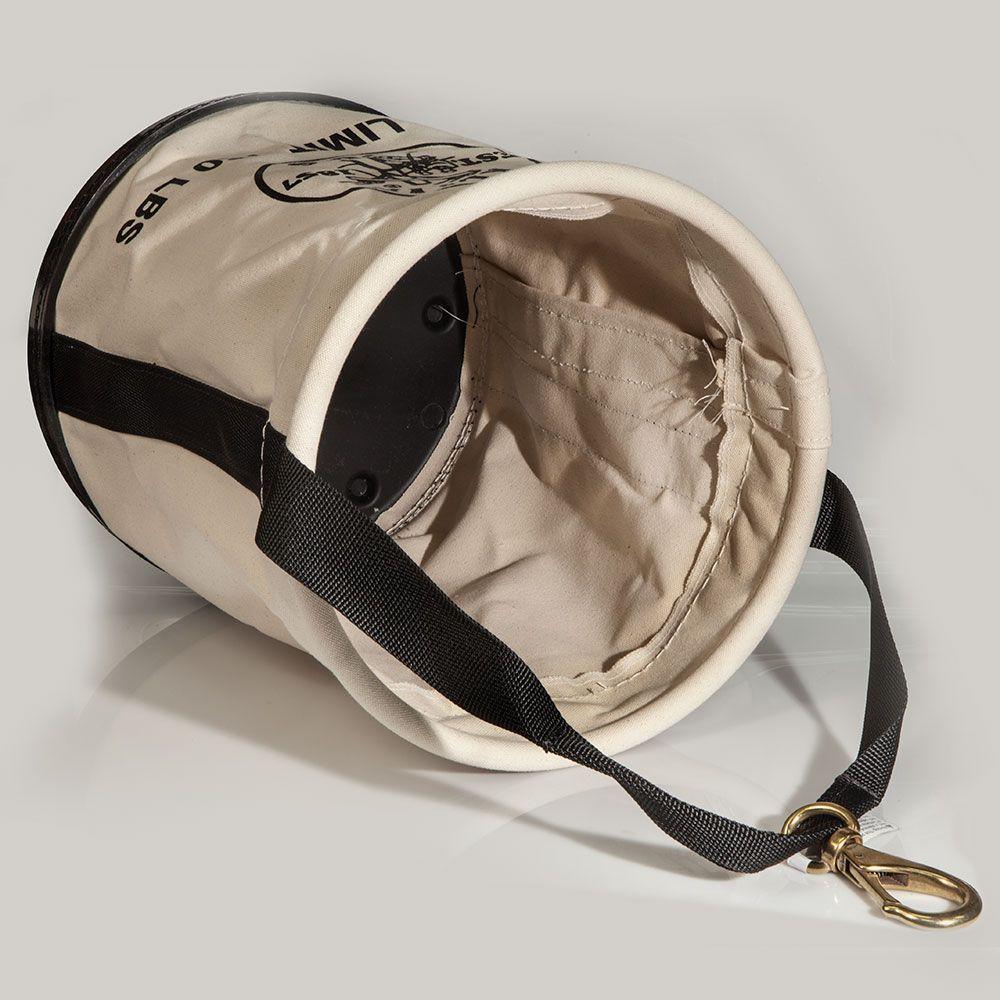 Transfer your tools safely and securely with this all purpose work bucket. Made of heavy-duty canvas for long life. Load rated at 150-pound (68 kg), the bucket features drain holes to keep your tools and bucket dry when working.