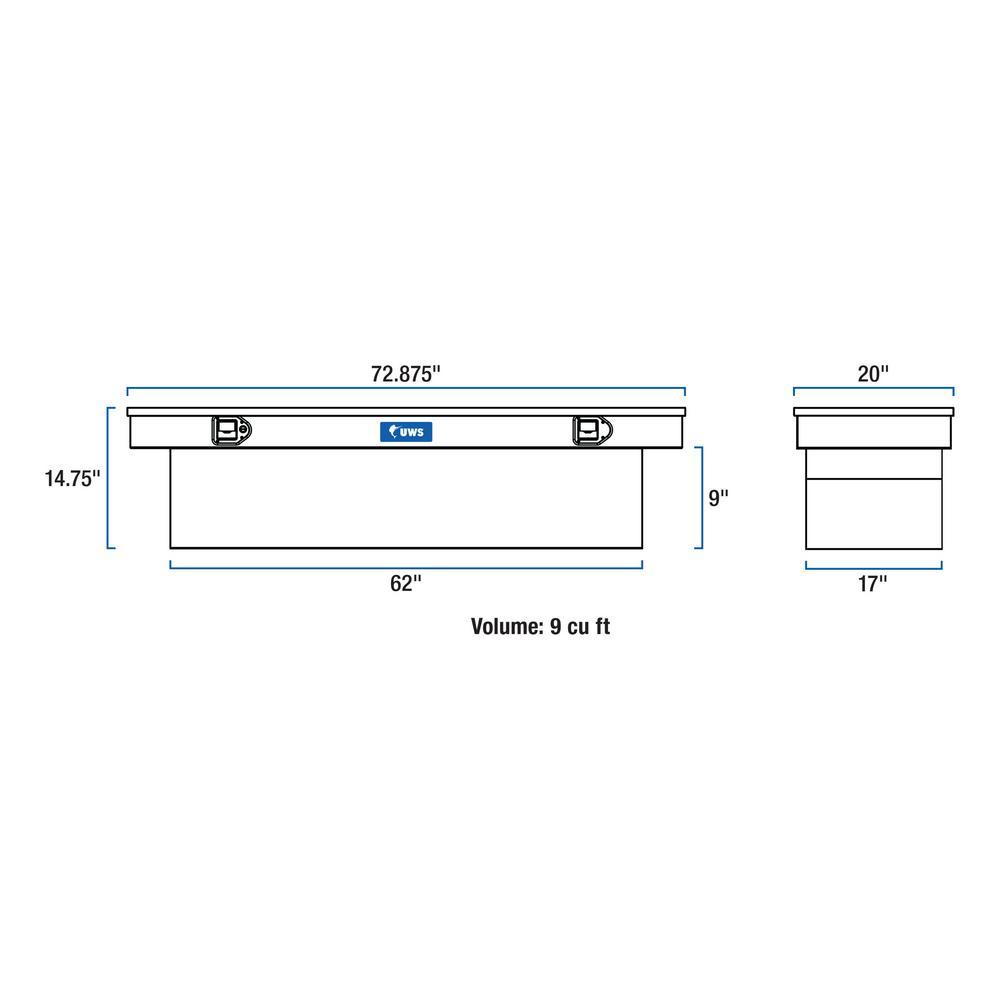 The standard cross-over truck tool boxes are the most popular products with many features and benefits from UWS and just fits right in with today’s modern truck styling. Built 2 in. lower on the bed rail for a better view from the rear window and a sleeker look. A beautiful look with all of the UWS exclusive features; including the remarkable Structural-Foamed Lid; built with features you know are only available on a UWS Product. Everything in one classic design making an exciting change in the look of modern tool boxes. Made to complement the latest new truck designs World Class quality and leading edge ideas only from UWS. The Crossover tool boxes are available in Bright Aluminum Diamond Tread or Topsider Black Powder Coated Aluminum Diamond Tread to fit your work needs and your truck's style.