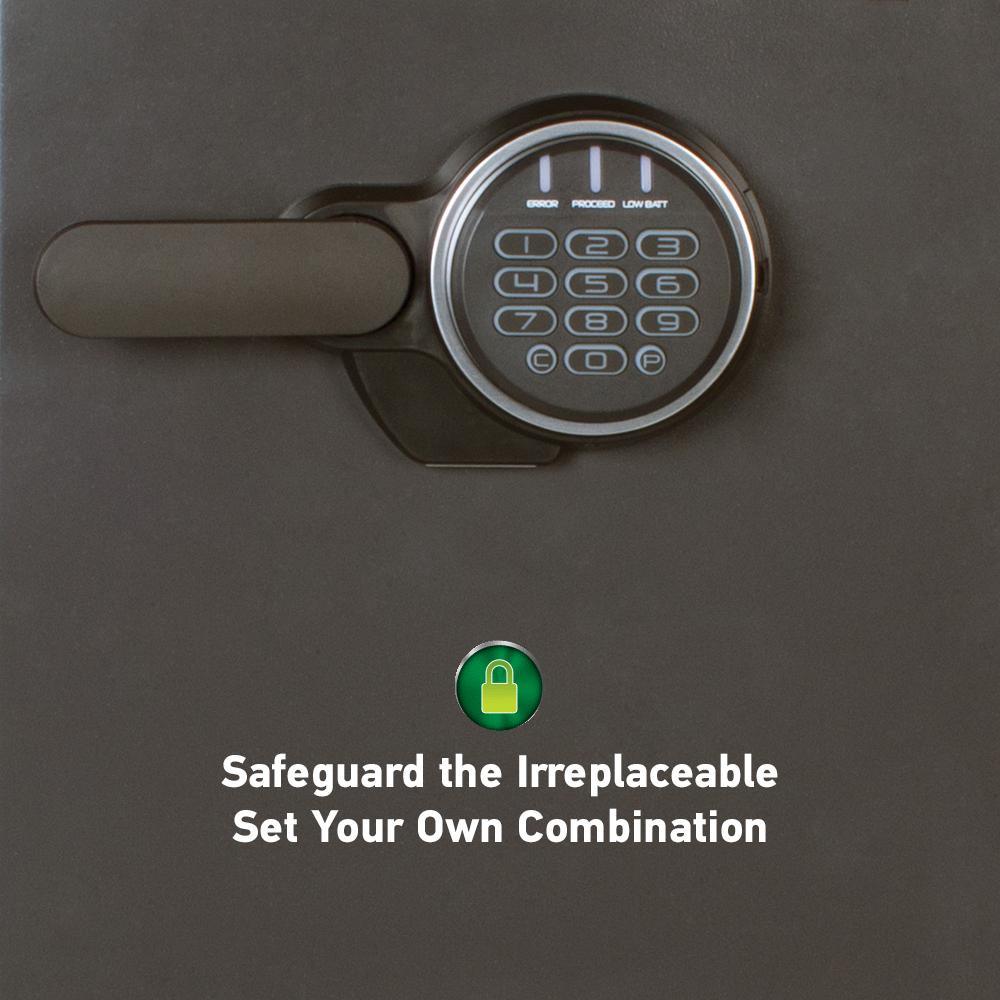 • Set your own digital combination fire safe for strong security; digital combination safe features 4 live-locking bolts, steel construction, pry-resistant hinge bar, shelf, and bolt down hardware