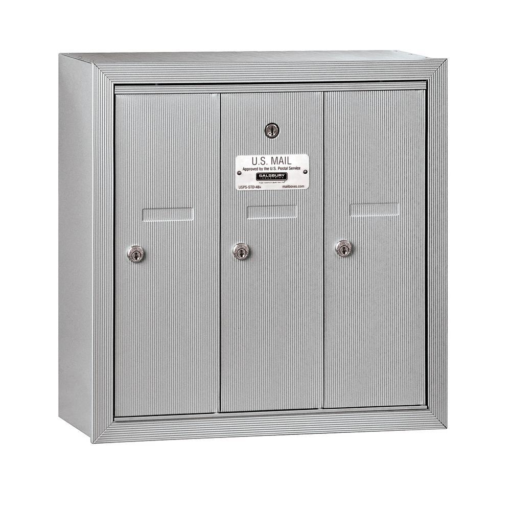 Made entirely of aluminum, vertical mailboxes are available in surface mounted and recessed mounted units. The mailboxes feature 5-1/2 in. W x 15-1/4 in. H extruded aluminum doors and a durable powder coated finish. Each mailbox door includes a five (5) pin cylinder cam lock with two (2) keys. Each door includes a 2-1/2 in. W x 5/8 in. H indentation to accommodate a label to identify the tenant's name and/or box number.