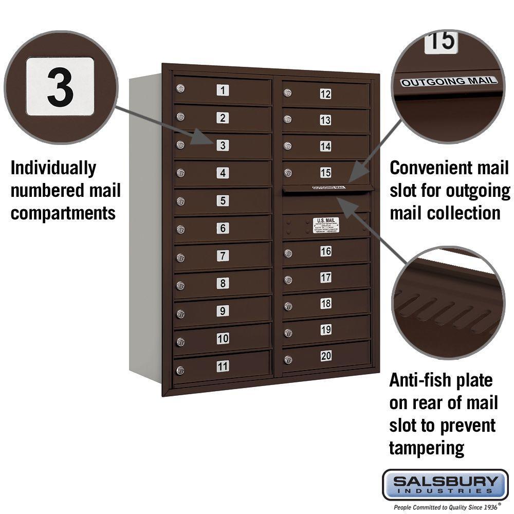 3700 Series 41 in. 11 Door High Unit Bronze Private Rear Loading Bronze 4C Horizontal Mailbox with 20 MB1 Doors