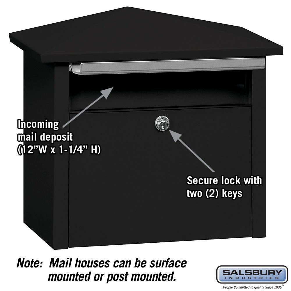Salsbury Industries Mail House Mailboxes are constructed of stainless steel for unparalleled resistance to the elements. The incoming slot is perfect for residents receiving larger items, such as magazines and bank check boxes. The storage compartment is wide and deep and is protected by a durable stainless steel cam lock with dust shutter.